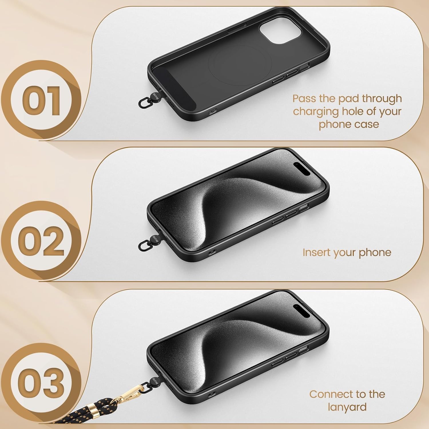 - 【Worry-free phone charging】: At 0.022 inches thin, it supports wired or wireless charging without disassembly; Installation easy, Just thread the patch through the charging port of the phone case inside, place the phone in the case, and attach the lanyard