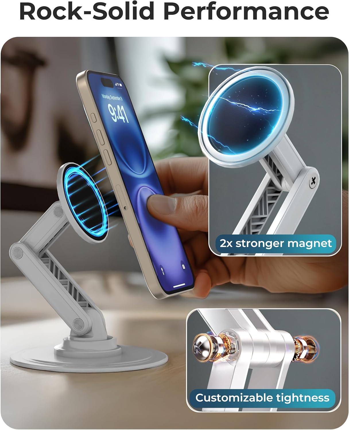 - Stronger Magnet, No Slips: This MagSafe phone stand for iPhone 16/15/14/13/12 offers hands-free convenience with a 2x stronger hold even with iPhone Pro Max & thick cases; mag safe phone holder for multitaskers, remote workers & families