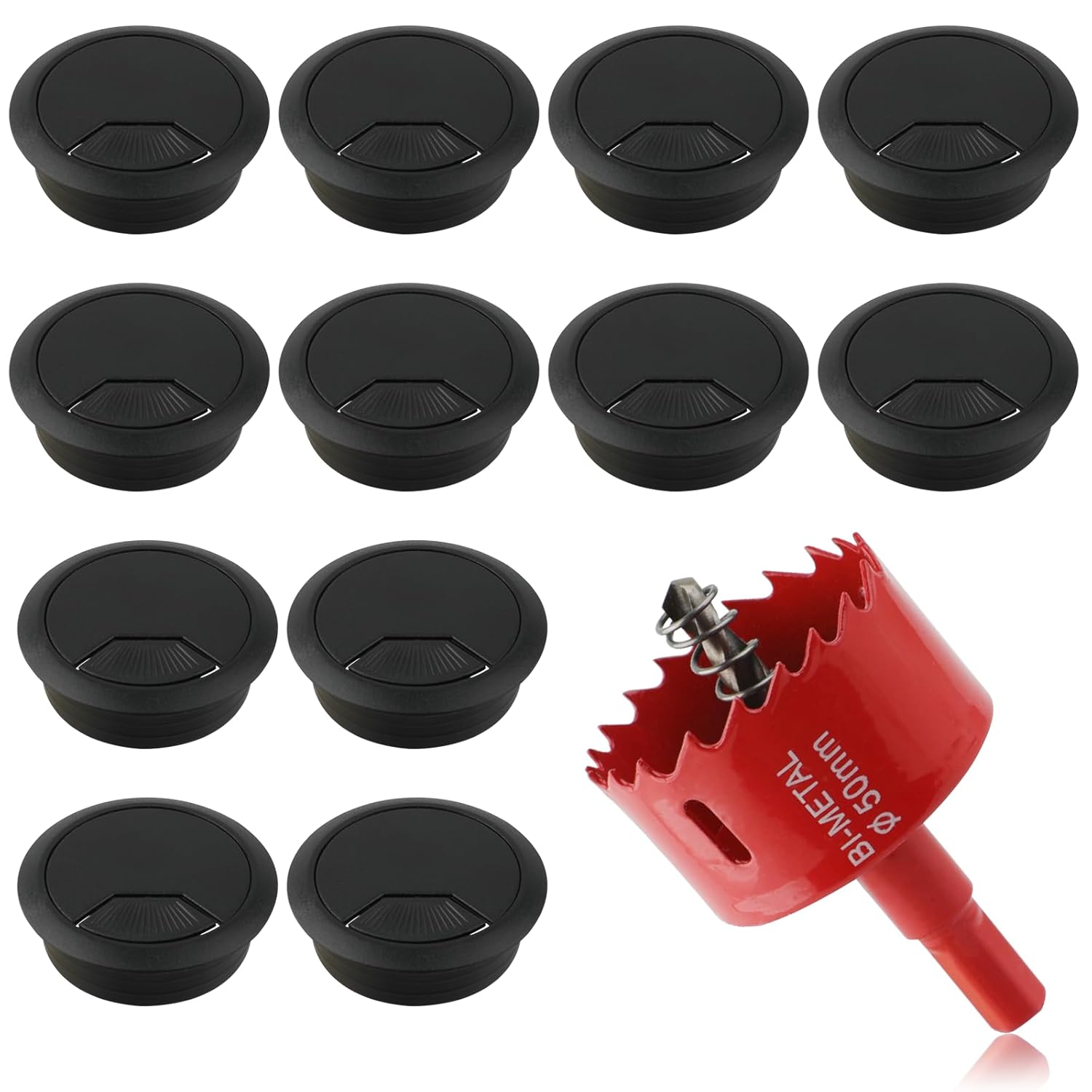 - 【Package Content】You will receive 12pcs 2 inch/50 mm black desk grommets with1pack* 2 inch/50 mm Hole Saw in the package.The cable grommets are made of sturdy abs engineering grade plastic,and suitable for 2inch (50mm) holes.Durable and Corrosion Resistance.