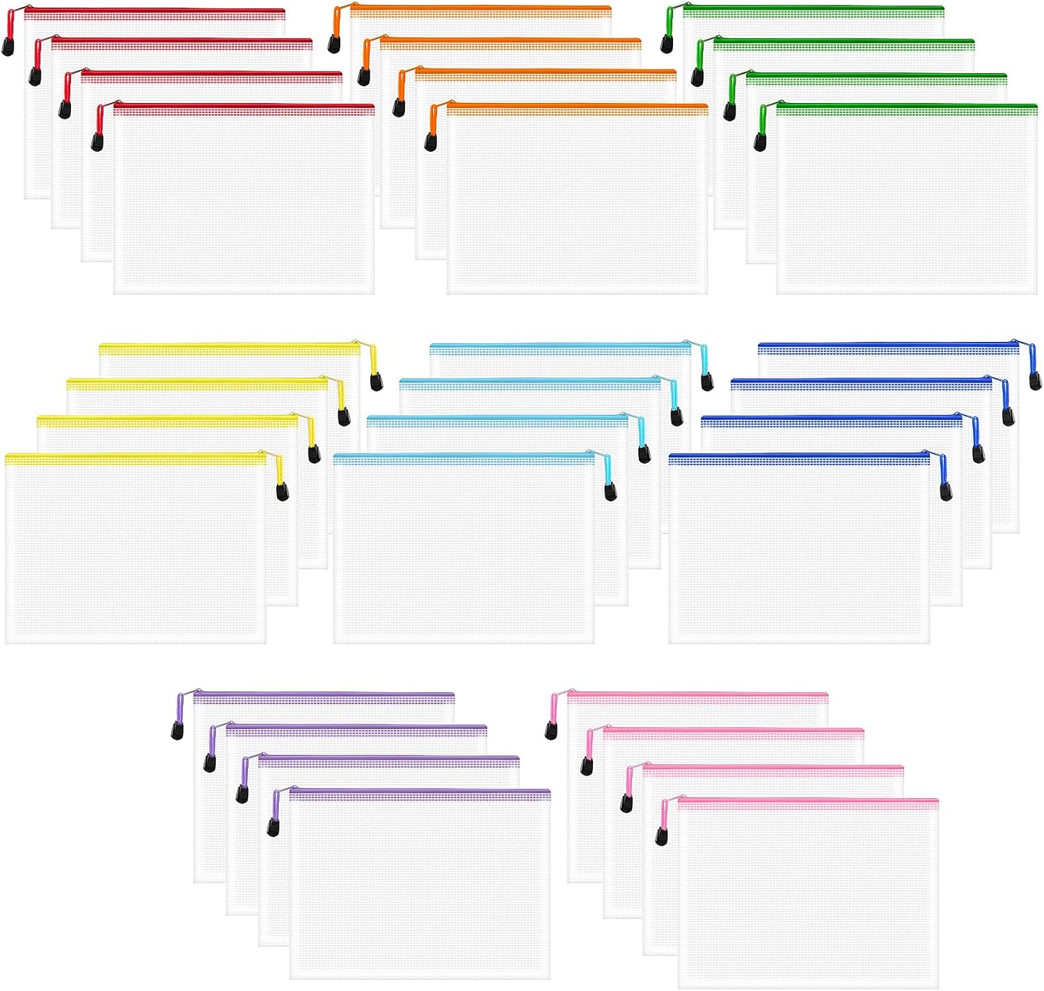 - 32 Pieces Zipper Bags: You will get 32pcs mesh zipper pouch bags in B5 sizes and 8 colors, keep your belongings organized with our plastic zipper pouches, perfect for toy storage bags, board game bags, organizer bags and zipper pouches for classroom. These mesh zipper bags are available in 8 sizes, are transparent and durable, will keep your items neatly organized and easily accessible.