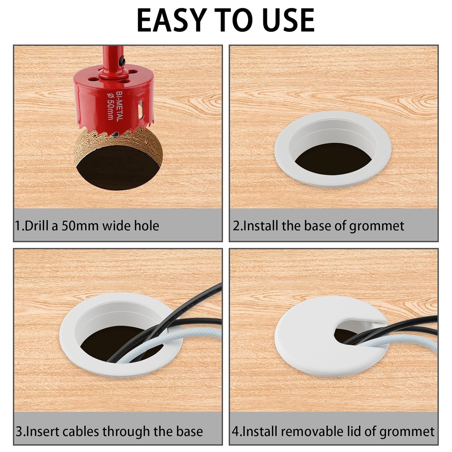 - 【Package Content】You will receive 12pcs 2 inch/50 mm white desk grommets with1pack* 2 inch/50 mm Hole Saw in the package.The cable grommets are made of sturdy abs engineering grade plastic,and suitable for 2inch (50mm) holes.Durable and Corrosion Resistance.