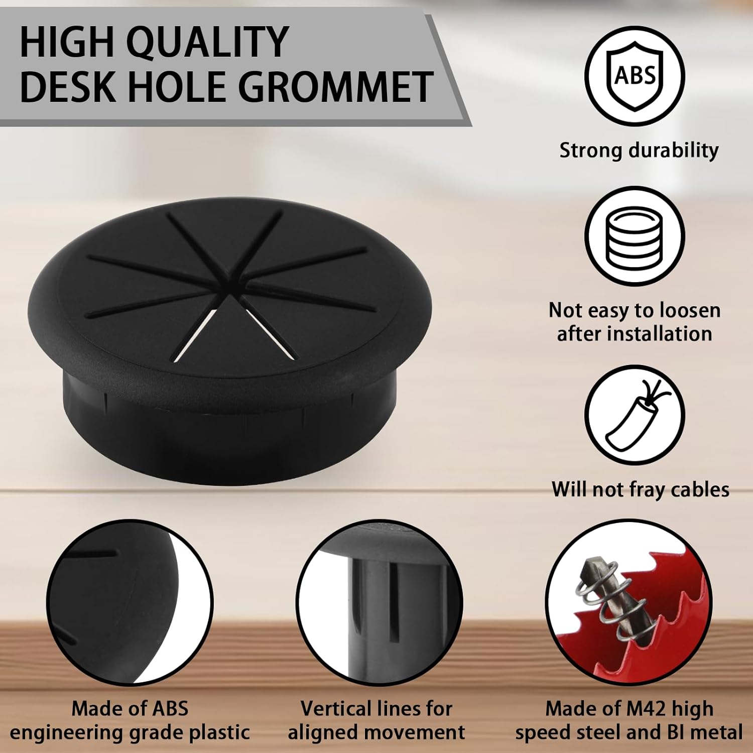 - 【Package Content】You will receive 12pcs 2 inch/50 mm black desk grommets with1pack* 2 inch/50 mm Hole Saw in the package.The cable grommets are made of sturdy abs engineering grade plastic,and suitable for 2inch (50mm) holes.Durable and Corrosion Resistance.
