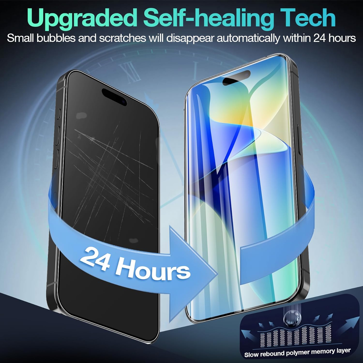 - ăScratch Auto-Repairă- The screen protector iphone 16 has slow rebound technology and self-healing power. Minor scratches and bubbles will automatically be repaired within 24 hours. (If there are bubbles after installation, please do not tear off and wait for 24h)