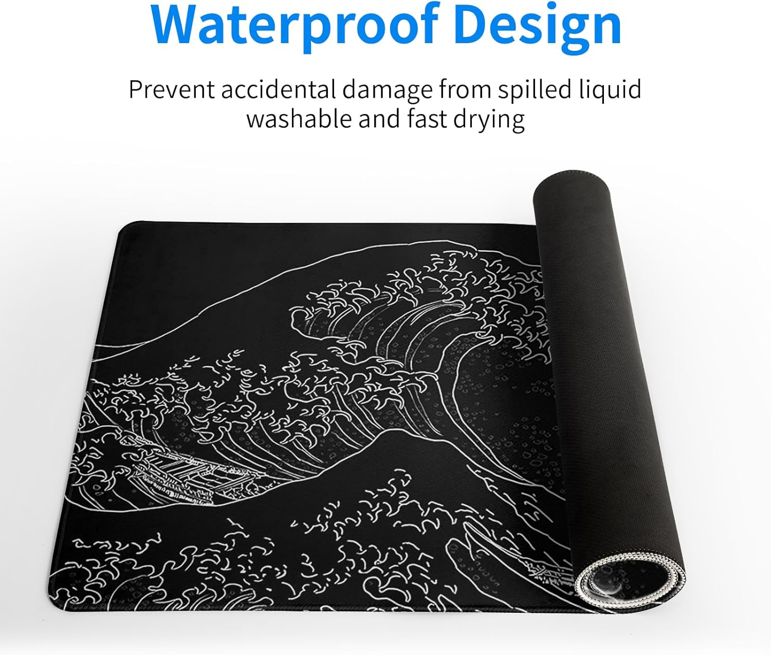 - ♥[Easy To Clean]:This large Sea Wave mouse pad for desk, Spill-proof coating protects your desktop from spilled water, Drinks, Ink and the other liquid spilled liquid or other accidents.Easy to clean, Just wipe with a wet cloth or paper, Does not fade and can be washed and foldable without leaving creases, Easy to carry.