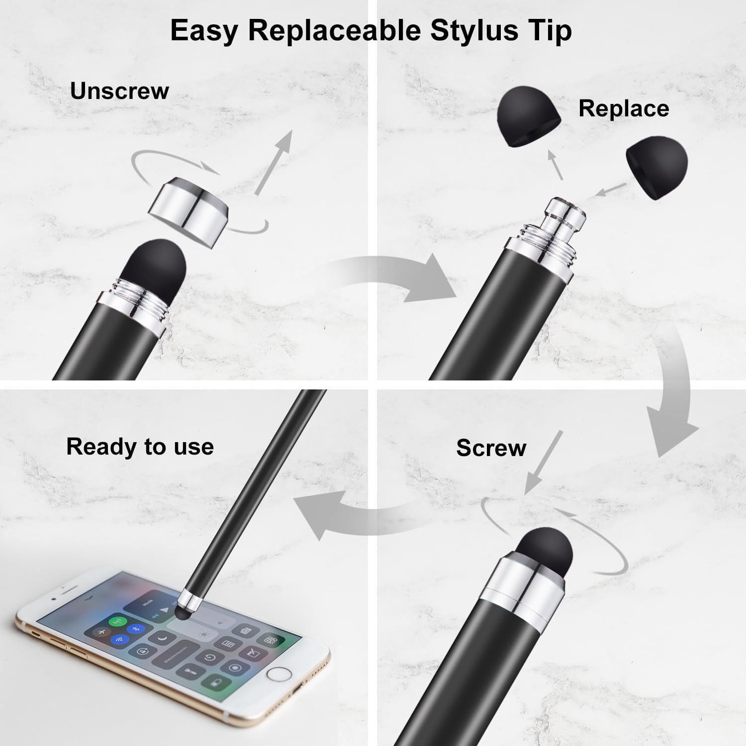 - Replaceable Anti-Scratch Stylus Tips: The touch screen stylus has an extra soft rubber tip, which can protect your screen from scratching and fingerprint. Come with 24 easy replaceable rubber tips, extending the lifetime of the stylus.