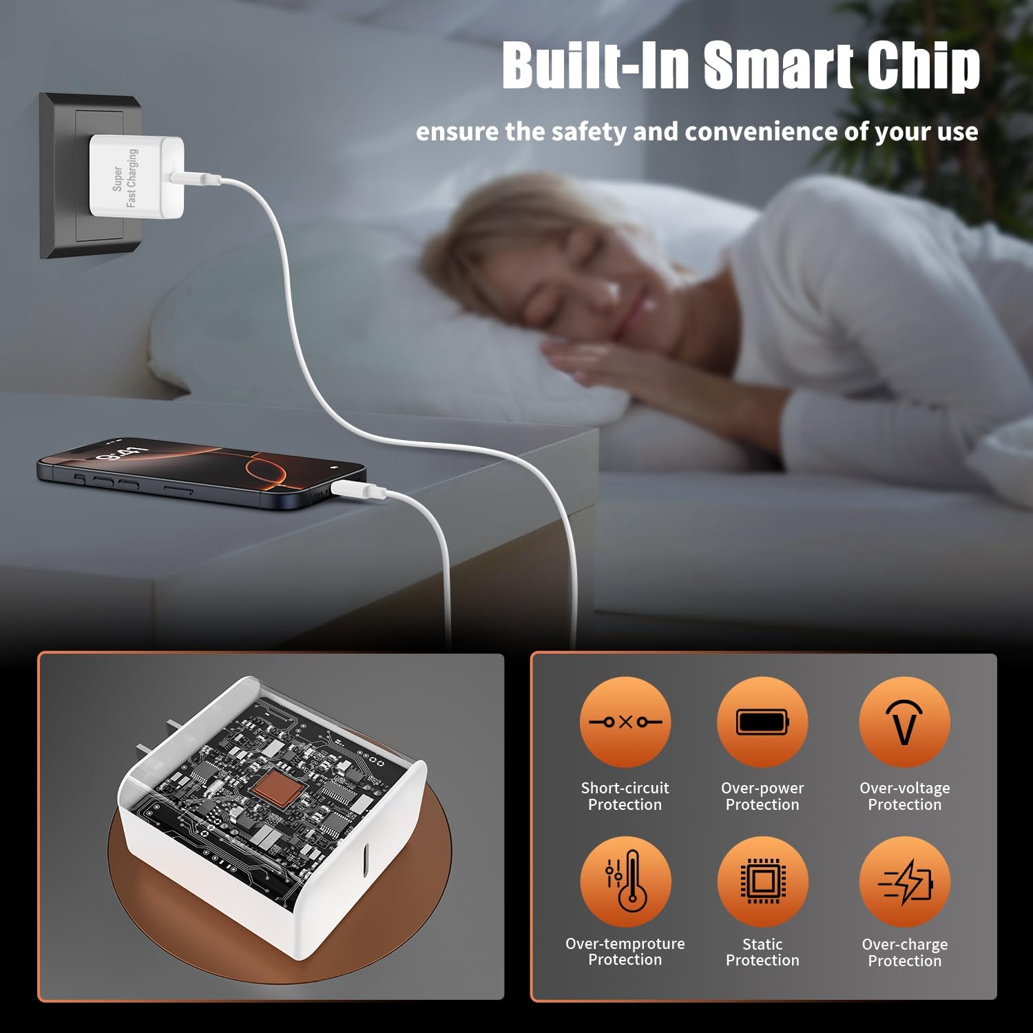 - ăSafety Efficient Fast ChargingăFor Our USB C for iPhone 16 charger fast charging prioritizes safety with its comprehensive protection system, guarding against over-voltage, over-charge, and over-heating. Equipped with advanced smart chips, it intelligently adjusts the current to match your device's needs, guaranteeing a rapid and secure charging process for iPhone16 15 series.