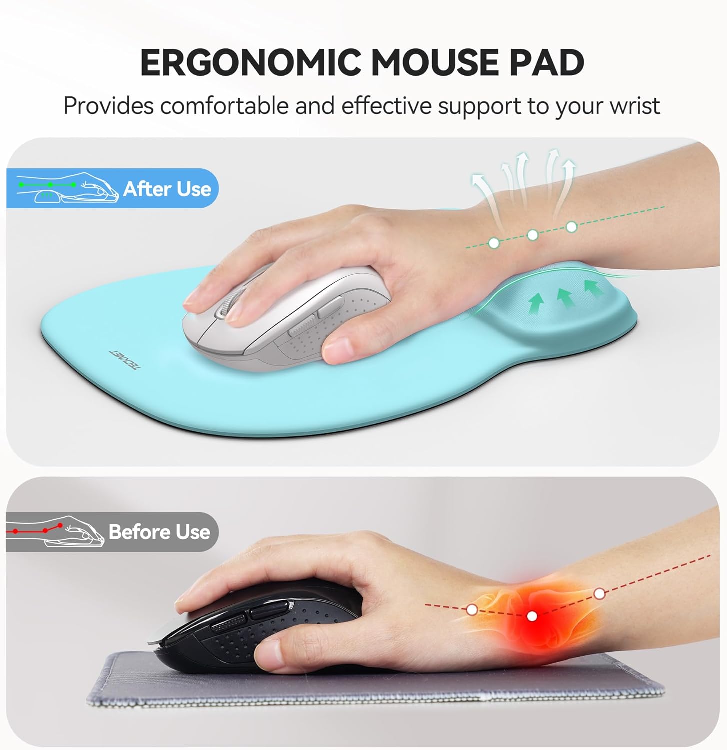 TECKNET Gel Mouse Pad with Wrist Rest, Ergonomic Office Mousepad with Wrist Support - Non-Slip & Smooth Surface Comfortable Desk Accessories Mat for Office, Gaming and Study - LT.Blue