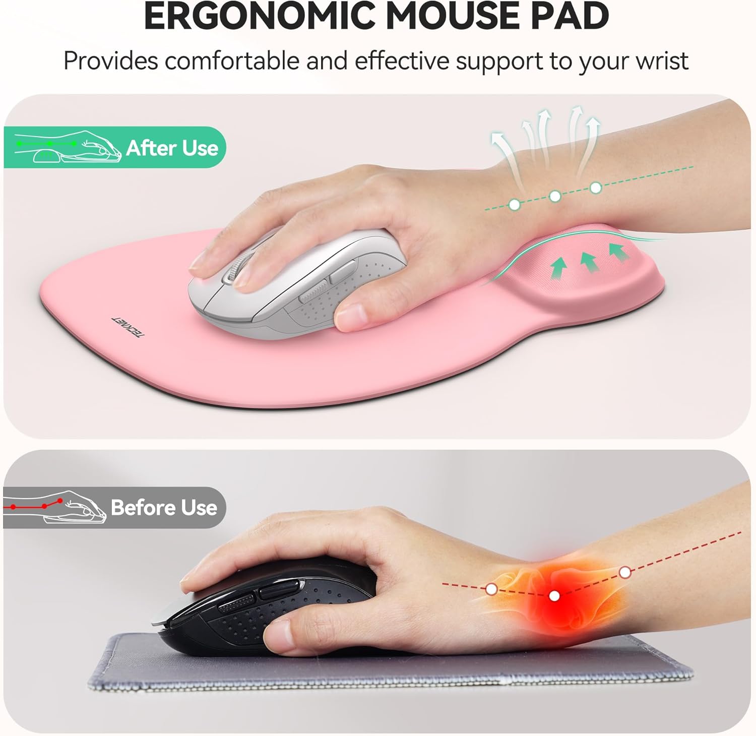 TECKNET Gel Mouse Pad with Wrist Rest, Ergonomic Office Mousepad with Wrist Support - Non-Slip & Smooth Surface Comfortable Desk Accessories Mat for Office, Gaming and Study - Pink