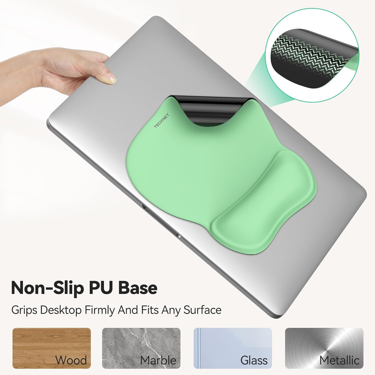 TECKNET Gel Mouse Pad with Wrist Rest, Ergonomic Office Mousepad with Wrist Support - Non-Slip & Smooth Surface Comfortable Desk Accessories Mat for Office, Gaming and Study - Green