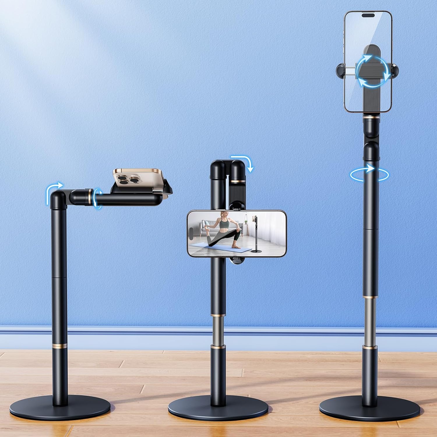 - Extended Overhead Arm: Compare to cell phone mounts on the market, our desktop phone holder for video recording has a longer overhead arm, the overhead space will not be limited, and the overhead area is bigger for better video recording.