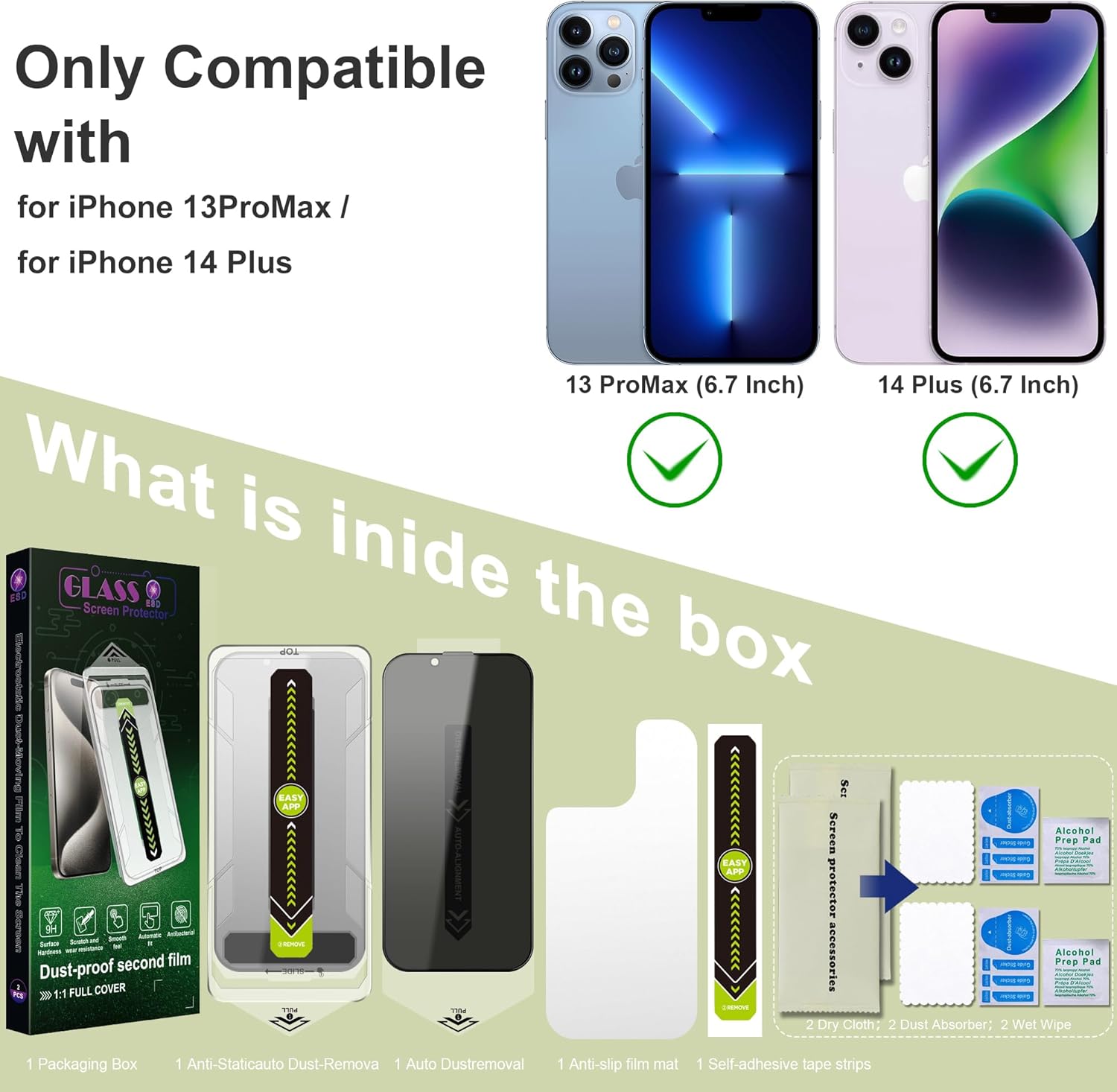 (2-Pack Anti-Spy Privacy Screen Protector for iPhone 13 Pro Max/14 Plus(6.7-Inch),9H Tempered Glass,Full Coverage,Anti-Fingerprint,Auto Dust Removal,Bubble-Free,Easy Installation