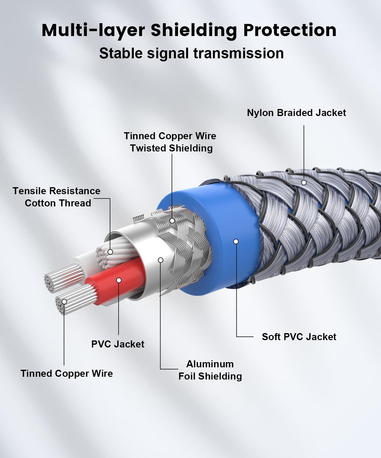 - 【Flexible & Long-Lasting】The 2Feet (60CM) cable, with a 6mm diameter and soft nylon braided jacket+PVC protection, offers flexibility and durability. Designed to endure repeated use, it ensures long-lasting performance without sacrificing signal quality.