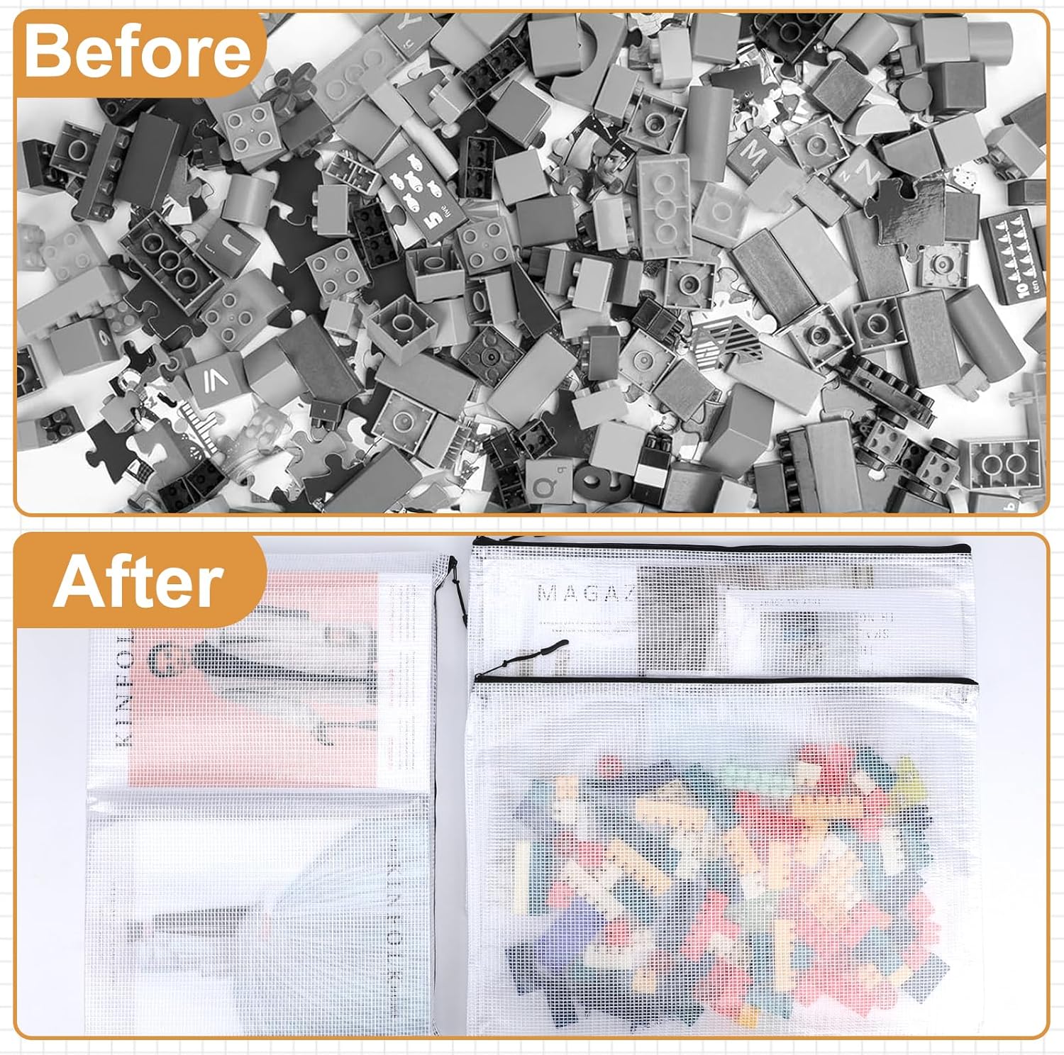 18pcs Mesh Zipper Pouch Puzzle Storage Bags A3 17x12 Inches Large File Bags Black Reusable Zipper Pouches for Organizing, Classroom Board Game Organization