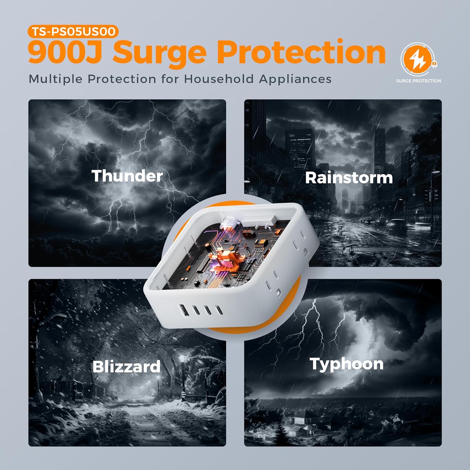 - 900J Surge Protector Outlet: This power strip surge protector protects your devices, such as computers and other electrical appliances, from power surges and spikes, providing you with a safe and reliable charging environment