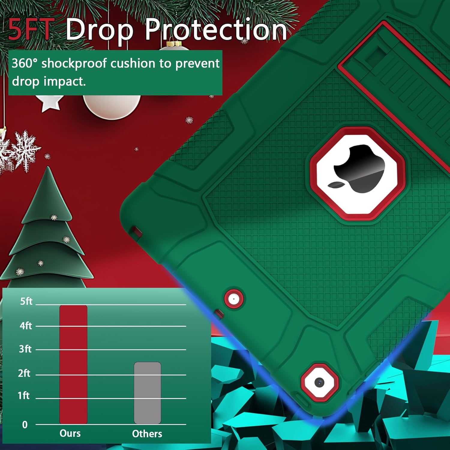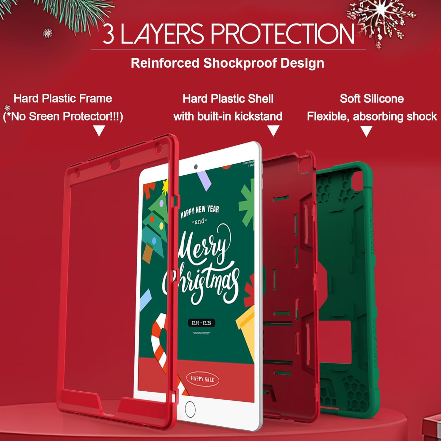 Rantice iPad 9th Generation Case, iPad 8th Generation Case, iPad 7th Generation Case, Hybrid Shockproof Rugged Drop Protection Cover with Kickstand for iPad 10.2'' (DarkGreen+Red