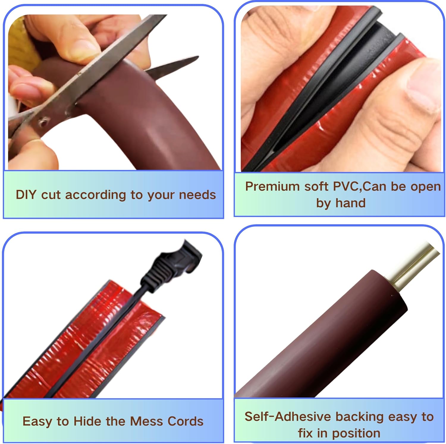 - [30-Second Peel-and-Stick Installation] The extension cord cover has a self-adhesive design, Simply remove the adhesive backing and press firmly onto hardwood, tile, carpets, or wall edges.Avoid repositioning for 24hrs for maximum grip. Bonus: Non-destructive removal leaves no residue on floors.