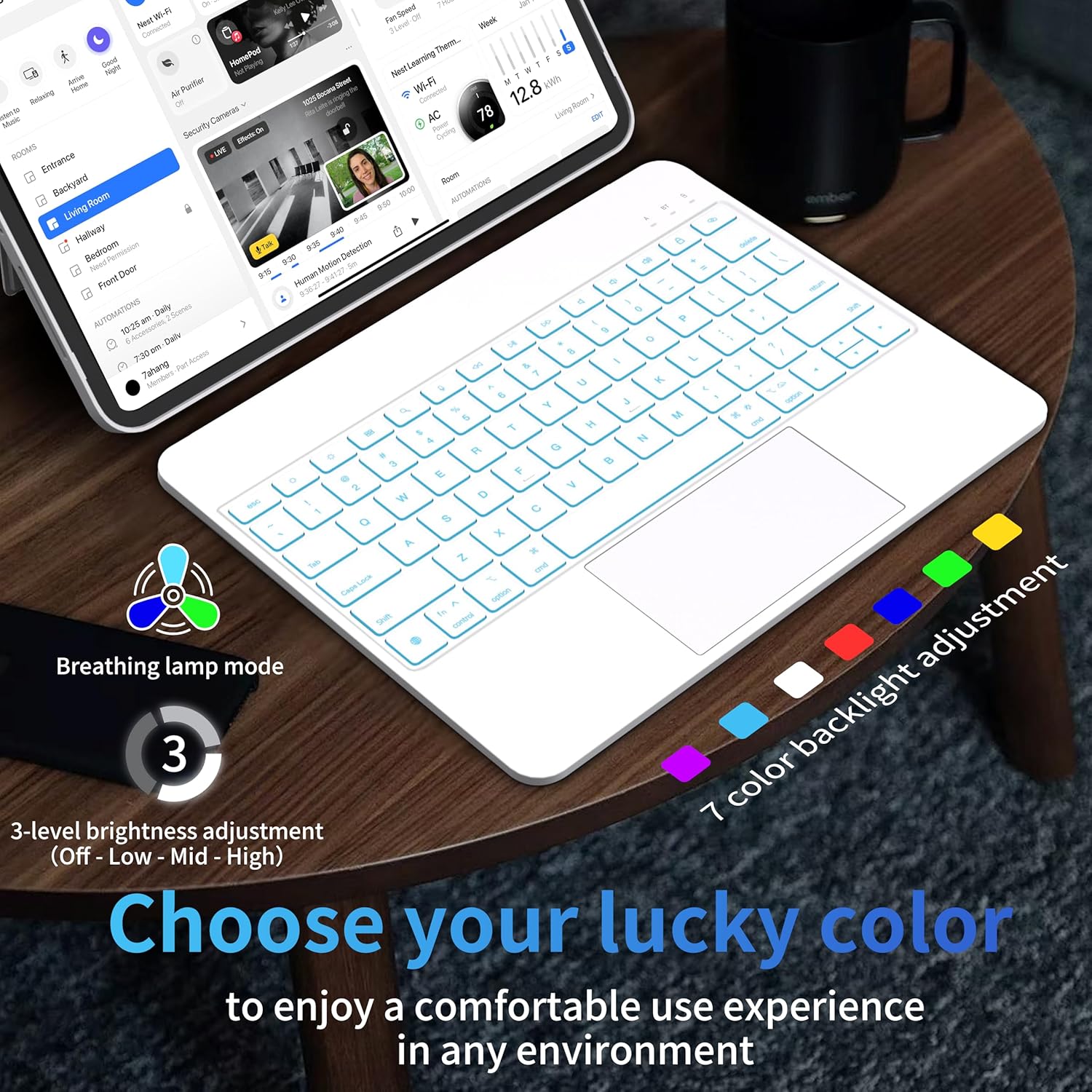 - 【7 Colors Backlit Keys】This detachable magic keyboard keys adopt a scissor structure and equipped with 7 different backlight colors and 3-level backlight brightness (Off/Low/Medium/High/Breathing mode). Even in dim environments, it can provide you with an excellent typing experience