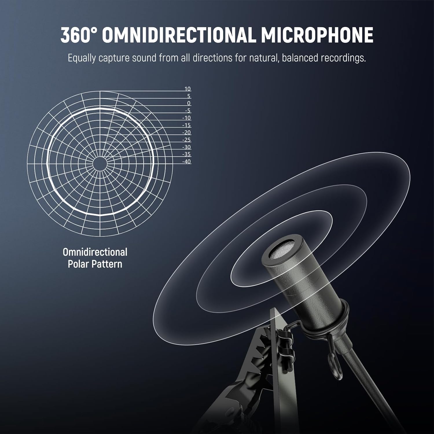 - ăOmnidirectional Condenser Mică Designed with a 360° sensitive omnidirectional pickup pattern and a sampling rate, this condenser mic delivers clear, crisp, and uncompressed voice from all directions.
