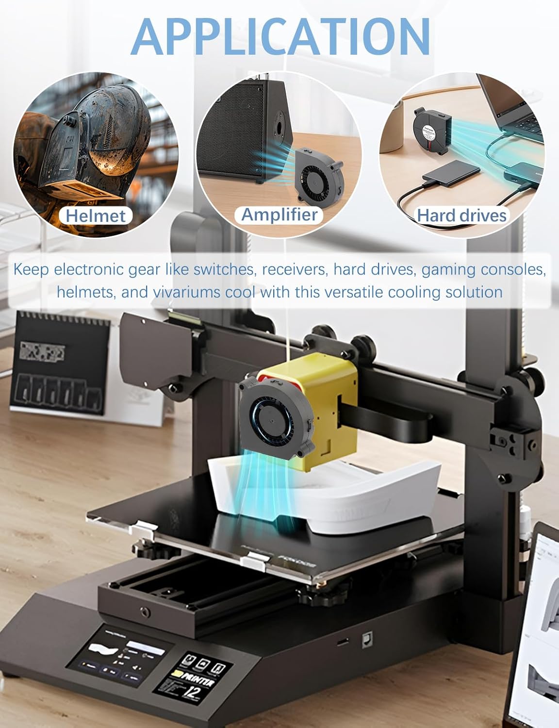 - APPLICATIONS: USB cooling fans serve a variety of purposes, from providing a cool breeze in homes to maintaining optimal temperatures in electronic devices. Perfect for electronic equipment, PC computer case , 3D printers, Air purifiers, game consoles,etc