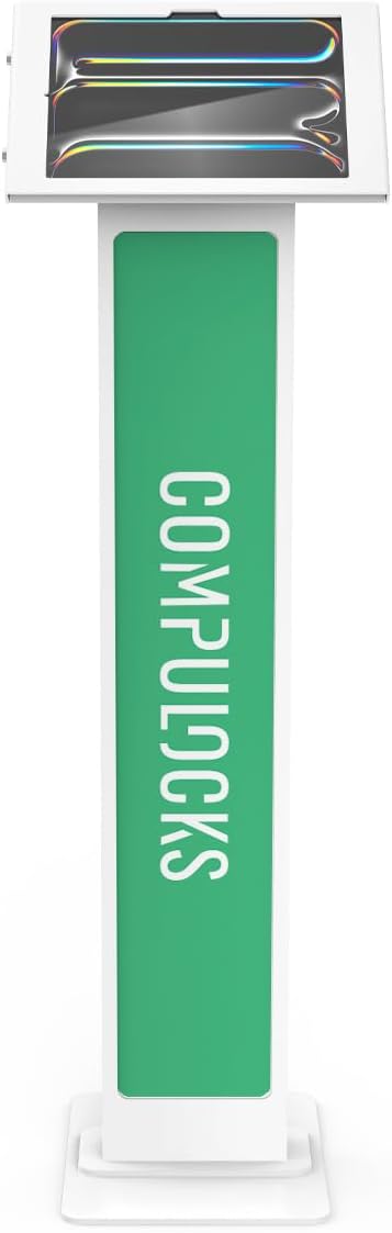 Compulocks iPad Pro M4 13" (2024) Apex Enclosure Brandable Floor Stand – Secure Tablet Display Stand, Kiosk Mount, Stand for Touchscreen Tablets, Digital Signage, POS Display - White