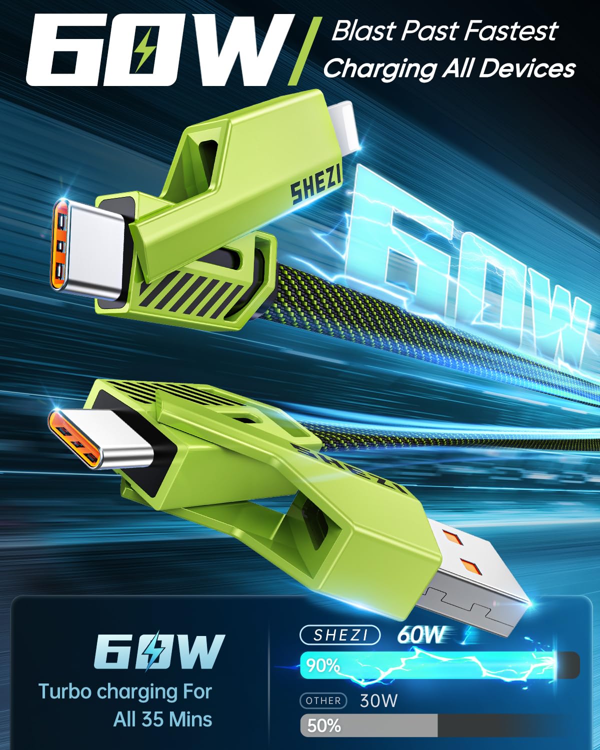 ![SHEZI [Upgraded 2.0 4-in-1 USB C Cable 60W 5FT Fast Charging [480Mbps Data Transfer] Flat Nylon Braided Charger Cord Combo, USB A/C to C/L Multi Charge Cable for iPhone/iPad & Most Devices, Green](http://hey-techs.com/cdn/shop/files/71ONKE0r3pL._SL1500.jpg?v=1762925558&width=1445)