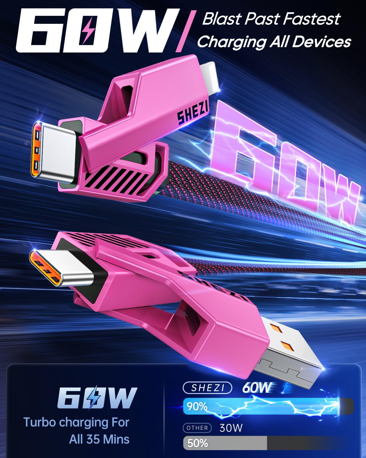 ![SHEZI [Upgraded 2.0] 4-in-1 USB C Cable 60W 5FT Fast Charging [480Mbps Data Transfer] Flat Nylon Braided Charger Cord Combo, USB A/C to C/L Multi Charge Cable for iPhone/iPad & Most Devices, Pink](http://hey-techs.com/cdn/shop/files/71xRQB_qBpL._SL1500_b9bea031-cdf2-400b-b616-dafa48a3fe6f.jpg?v=1762925563&width=1445)