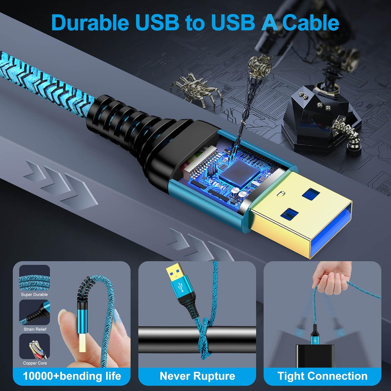 - DURABLE MALE to MALE LONG USB CABLE: With a braided shield and aluminum alloy connector, this USB to USB Cord is designed with 20,000+ times bending test, the solid and durable two-shade braided nylon shield gives the cable stronger protection and flexible performance than others and no need to worry about tangling, no more cable breakage worries. 6Ft USB to USB Cord prevent you from being limited to where you can go while use the device, very convenient for moving around at home, car or office