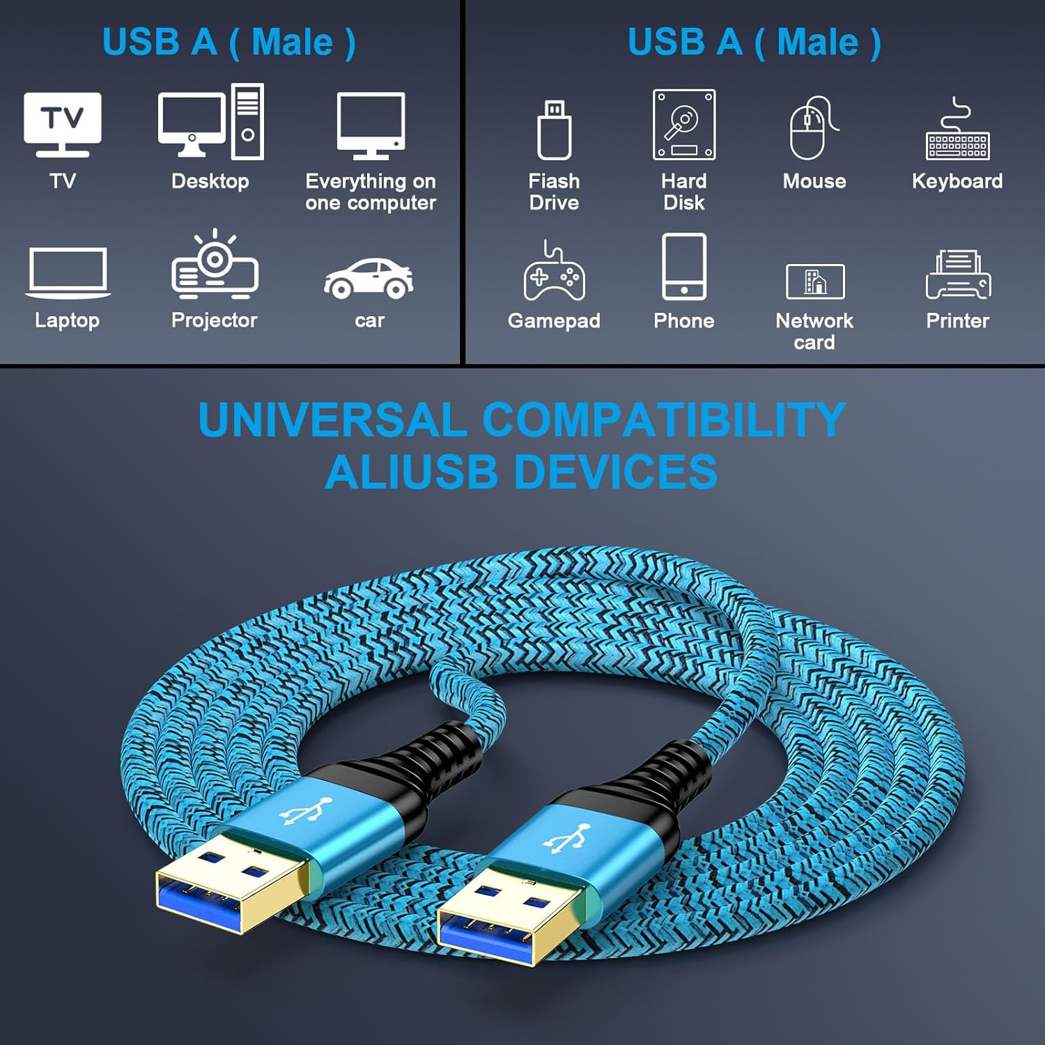 - SUPER FAST 5Gbps DATA TRANSFER SPEED: The USB 3.0 male to male cord data transfer up to 5Gbps, 10 times faster than USB 2.0 cables, which can transfer your large files just in seconds, no more waiting. The USB A to USB A Cord also allow connection of USB 3.0 devices to legacy USB 2.0 computer. Backwards compatible with computer USB 2.0 and USB 1.1 ports, . ( Note: Male to Male USB Cable cannot support video transmission )