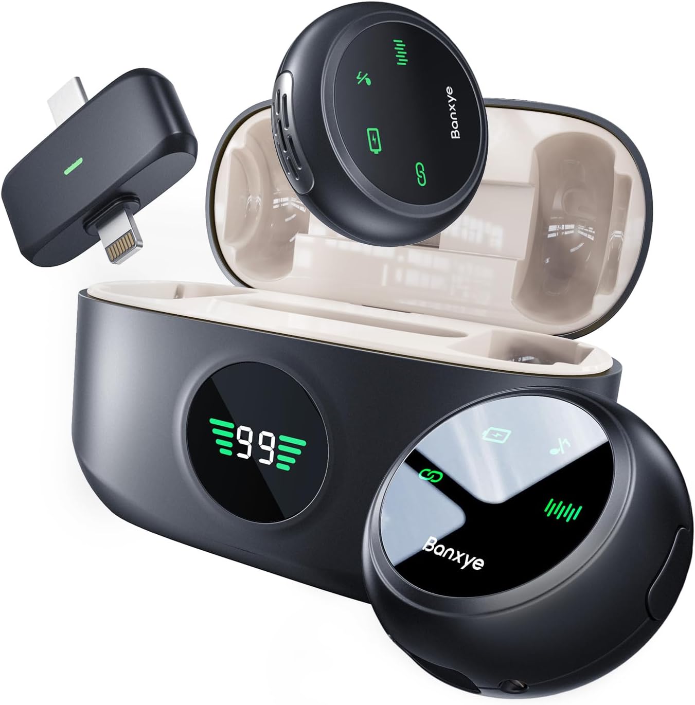 - 【Unmatched Support】 Compatible with Lightning and Type-C connectors. Used for iPhone 16/15/14/13/12/11, Sansung series and Google series phone on Youtube, Tiktok, Vlog and so on. Enjoy 1-second quick pairing and reduce hassle. We stand by our product with a lifetime warranty. For any questions, follow these steps: Visit Your Account→Your Orders→Select the product detail page→Click on "Banxye Store"→Choose "Ask a Question" for prompt assistance.