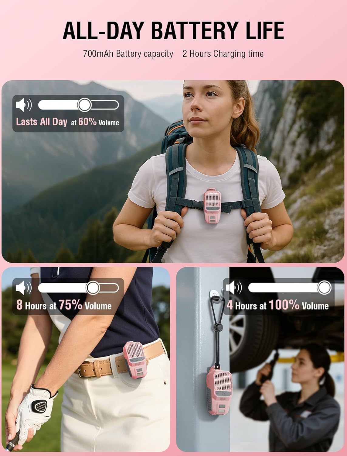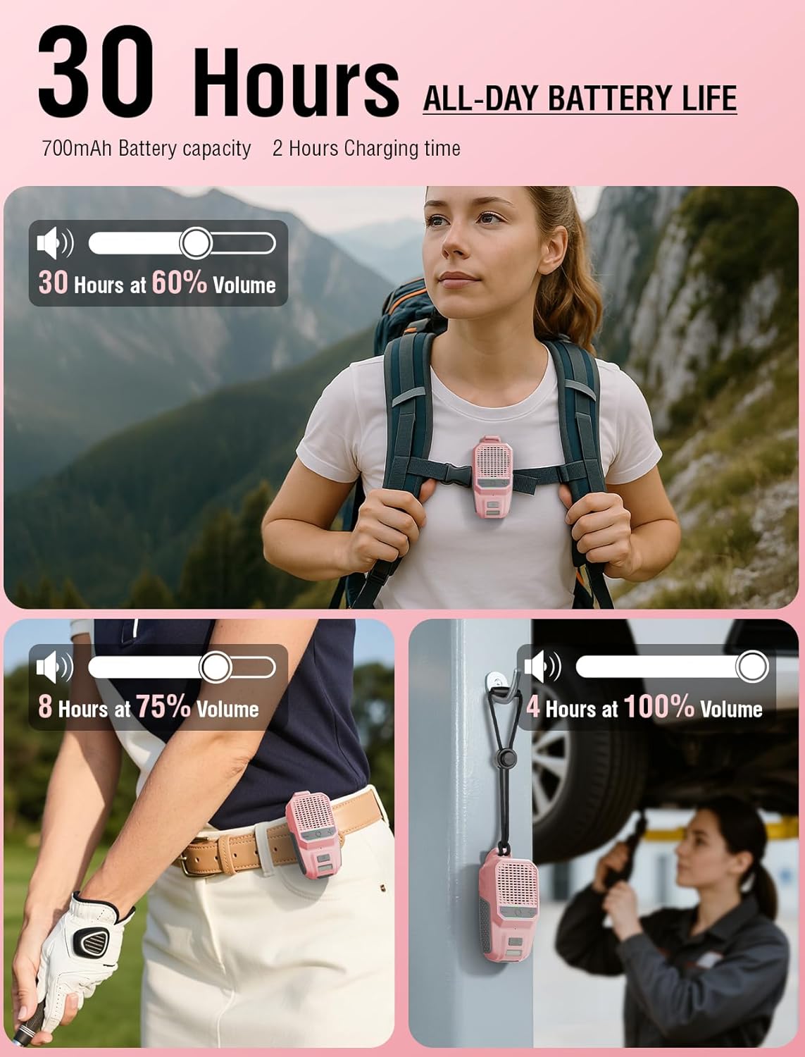 - 【16 levels Adjustable & Loud Speakers】This clip speaker with 16 precise volume levels, when attached to collar or bag - lower volume settings avoid ear fatigue in personal listening mode. At gatherings or outdoor activities, simply boost the volume to fill the area with rich, vibrant audio. Ensures you always get the perfect balance between personal comfort and shared enjoyment, whether you're working out solo or at the backyard BBQ.