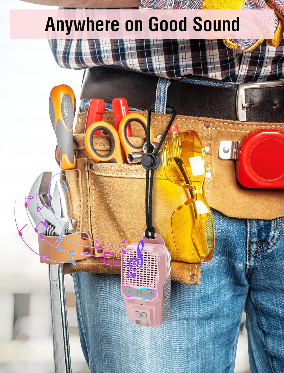 GBEAST Wearable Bluetooth Speaker with RGB, IPX6 Waterproof Clip-On Portable Speaker with 30H Playtime - Built-in Mic Hands-Free for Jobsite/Outdoor/Golf, TWS Portable Speakers(Pink)