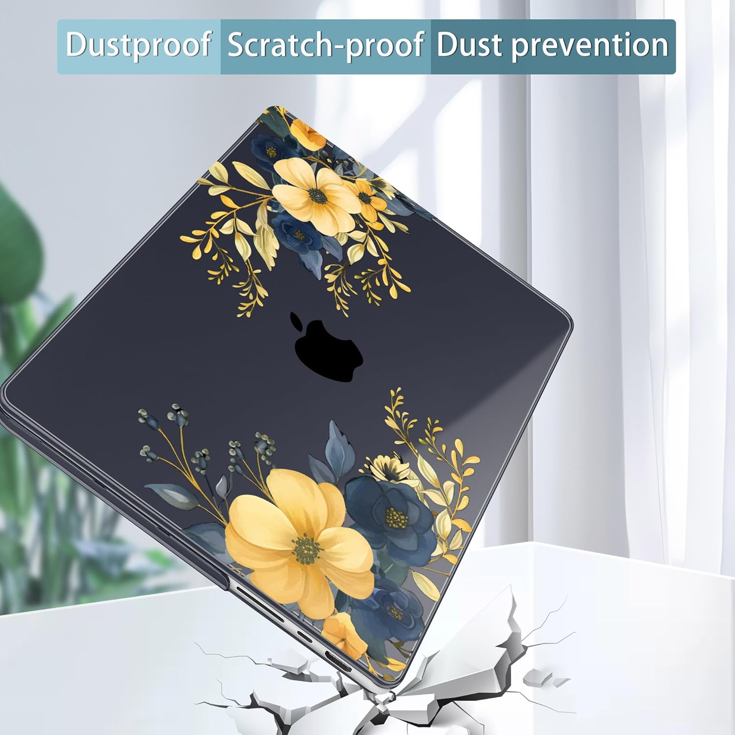 Tuiklol for MacBook Pro 14 Inch Case 2024-2021 Release M4 A3112 A3401 A3185/M3 A2918 A2992/M2 A2779/M1 A2442 Pro/Max,Hard Shell Case with Keyboard Cover & Screen Protector for Touch ID,Leaves & flower