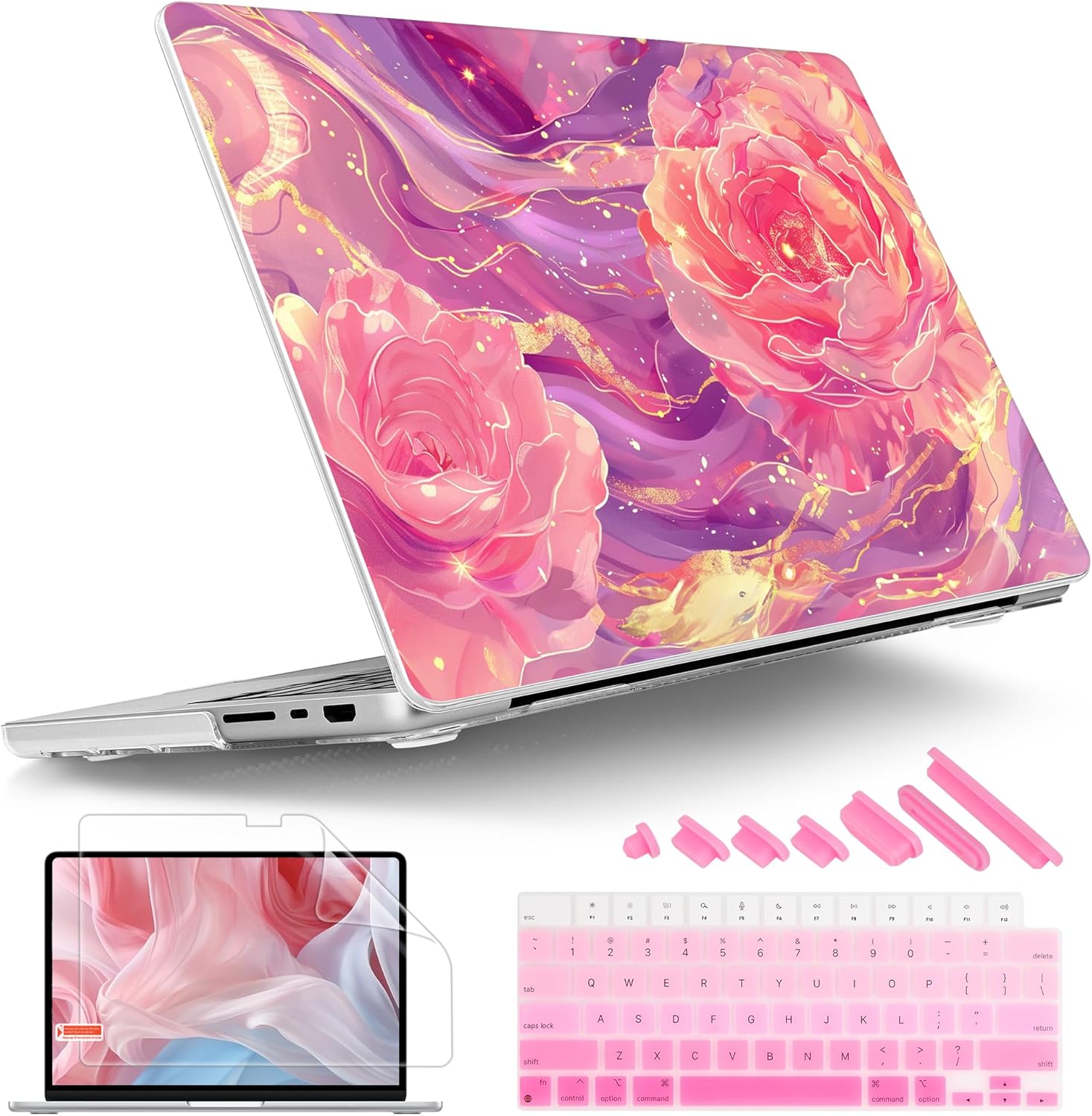 Tuiklol for MacBook Pro 14 Inch Case 2024-2021 Release M4 A3112 A3401 A3185/M3 A2918 A2992/M2 A2779/M1 A2442 Pro/Max,Hard Shell Case with Keyboard Cover & Screen Protector for Touch ID,Pink Roses