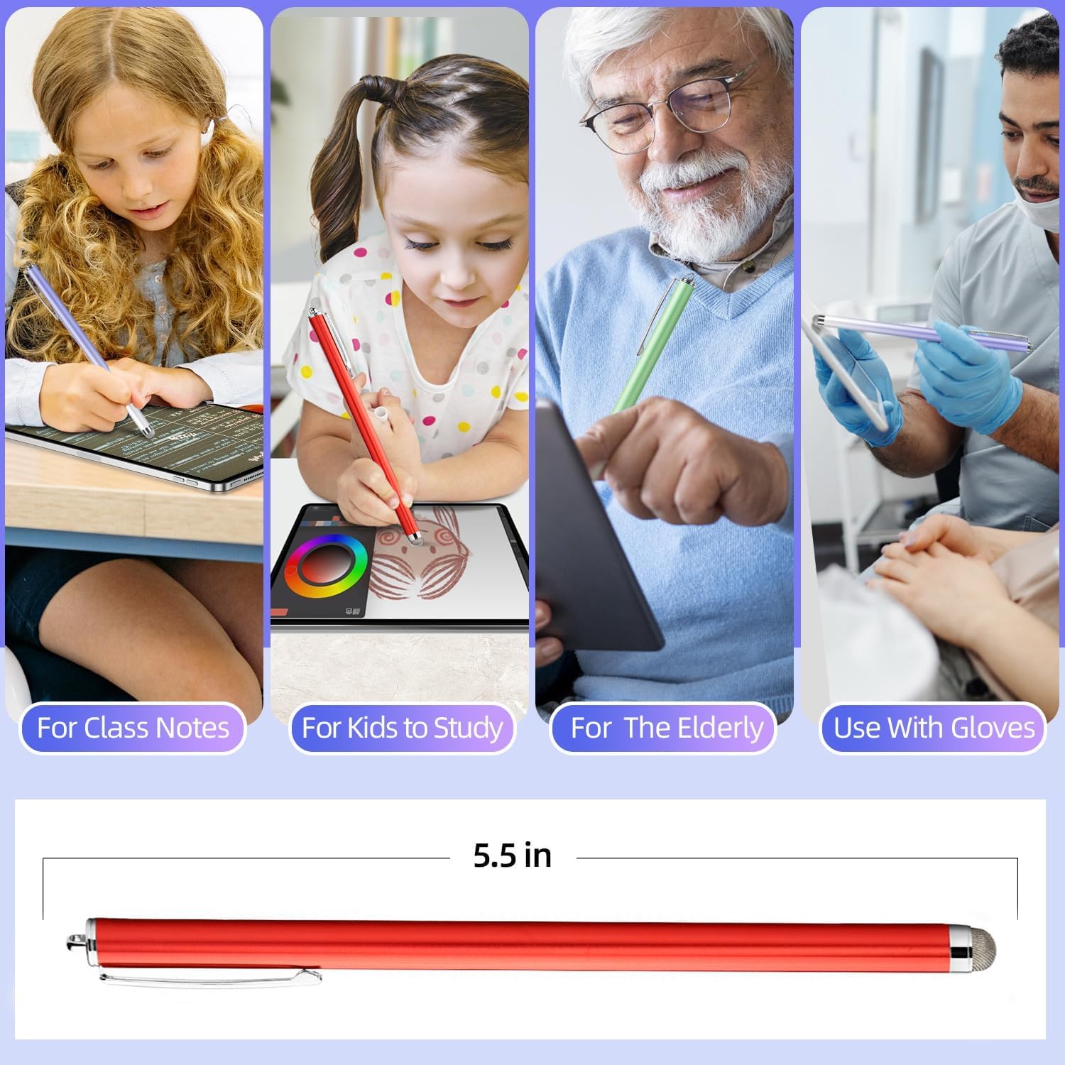 - [185mm XXL Long Pen for Enhanced Usability]Perfectly designed for large tablets and iPads, this extended stylus makes it easier to tap, swipe, and write without needing extensive hand movements. Its balanced length ensures comfort and precision for both adults and children.