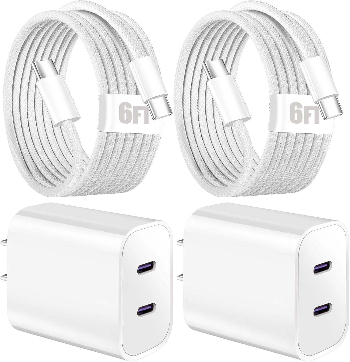 - Included Components : 2 x Dual USB C Charger,2 x 6FT Woven USB C to USB C Chaeging Cable Cord