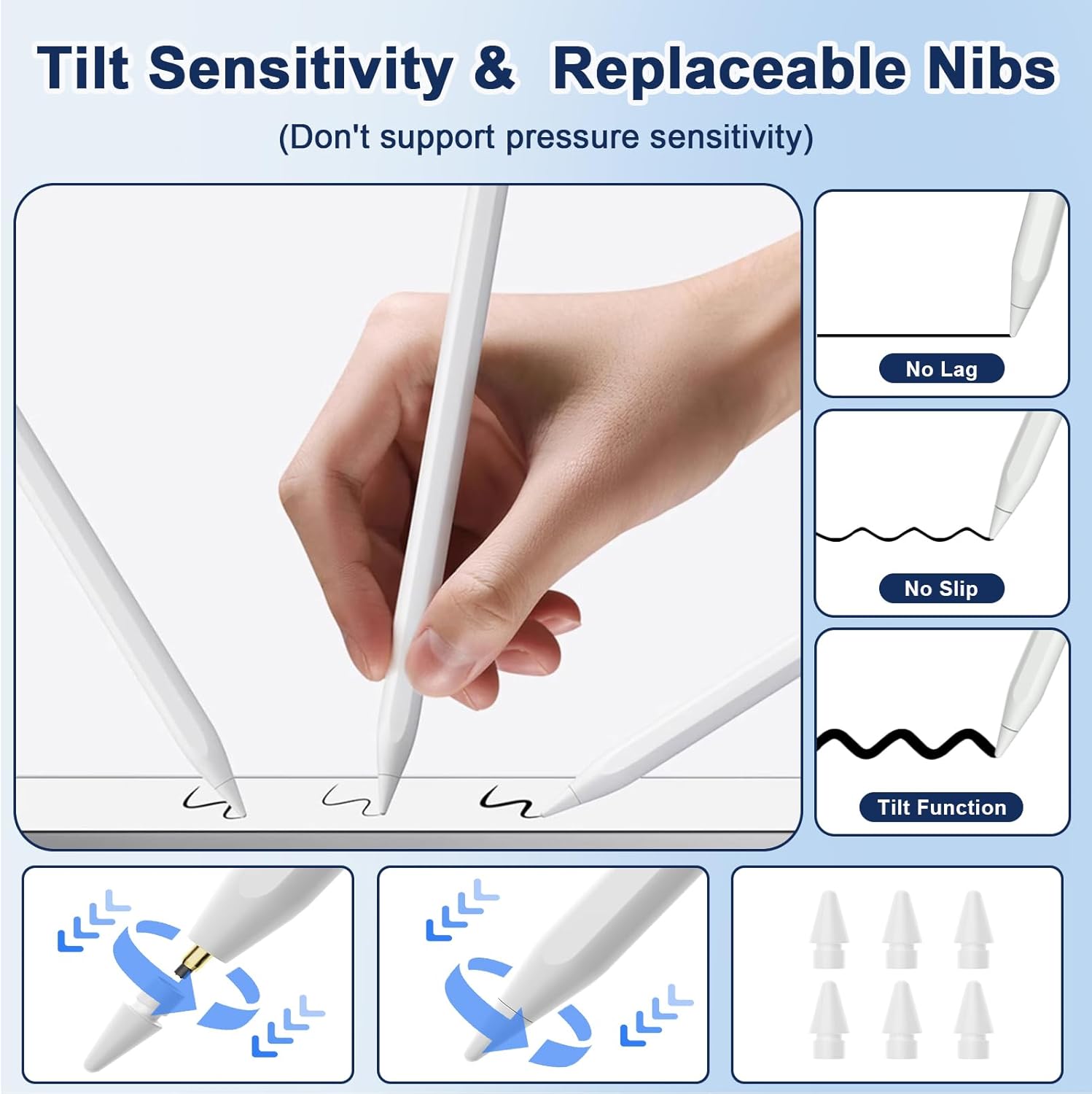 - USB-C Fast Charge Compatibility: Upgrade Stylus pencil Same as Apple Pencil 2nd Generation supports USB-C Fast Charge and Compatible With iPad 2018-2024 Model: iPad Pro 13”(M4)/12.9”/11”,iPad Air 6(M2)/5/4/3,iPad Mini 7(A17 Pro)/6/ 5,iPad10/9/8/7/6 and fully charging in 30 minutes and up to 8 hours of continuous use and Power display: Charging: green light breathes; Using: green light stays on; Less than 20% power: red light flashes