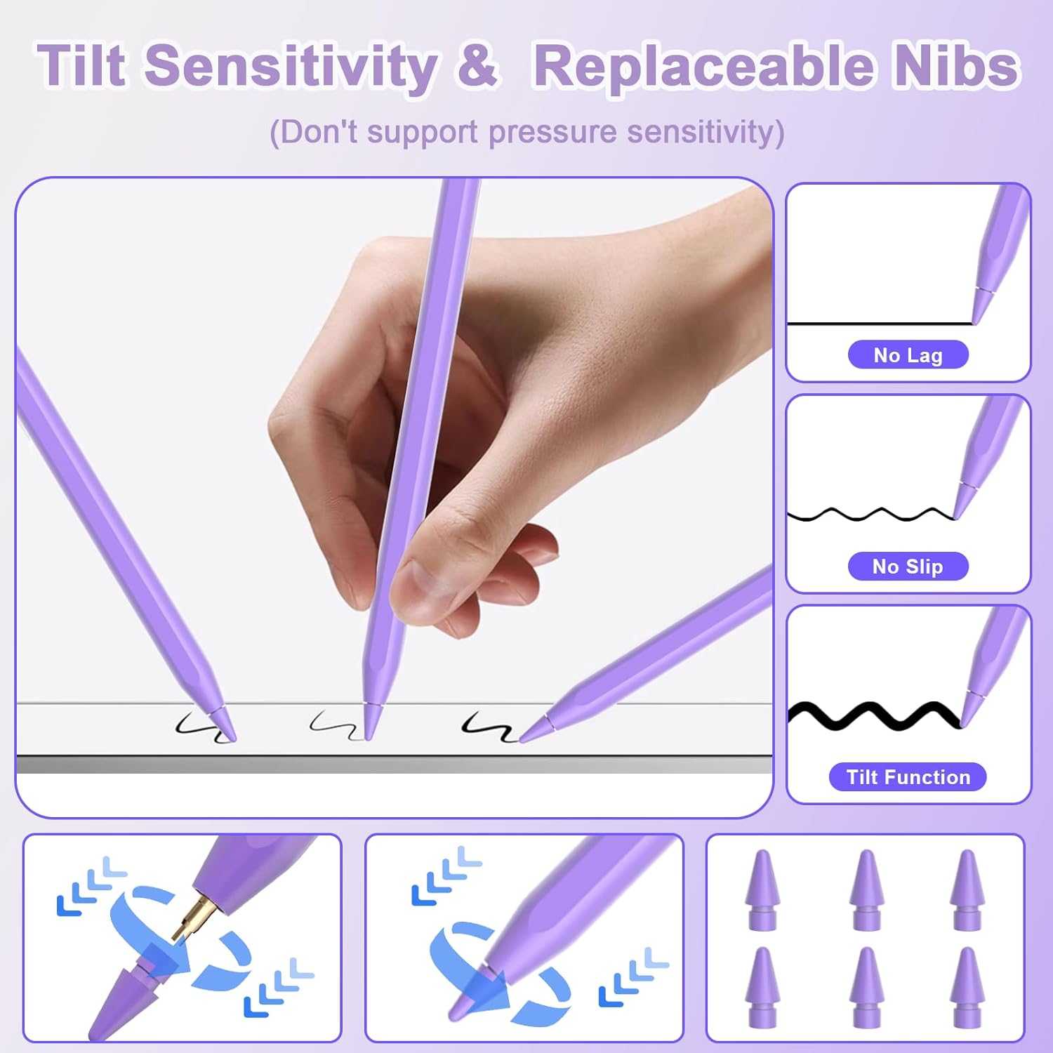 Pencil 2nd Generation for iPad 2018-2024 with Magnetic Wireless Charging Compatible with Apple iPad Pro 13”(M4)/12.9”/11”,iPad Air 6(M2)/5/4/3,iPad mini 7(A17 Pro)/6/5,iPad10/9/8/7/6 Purple