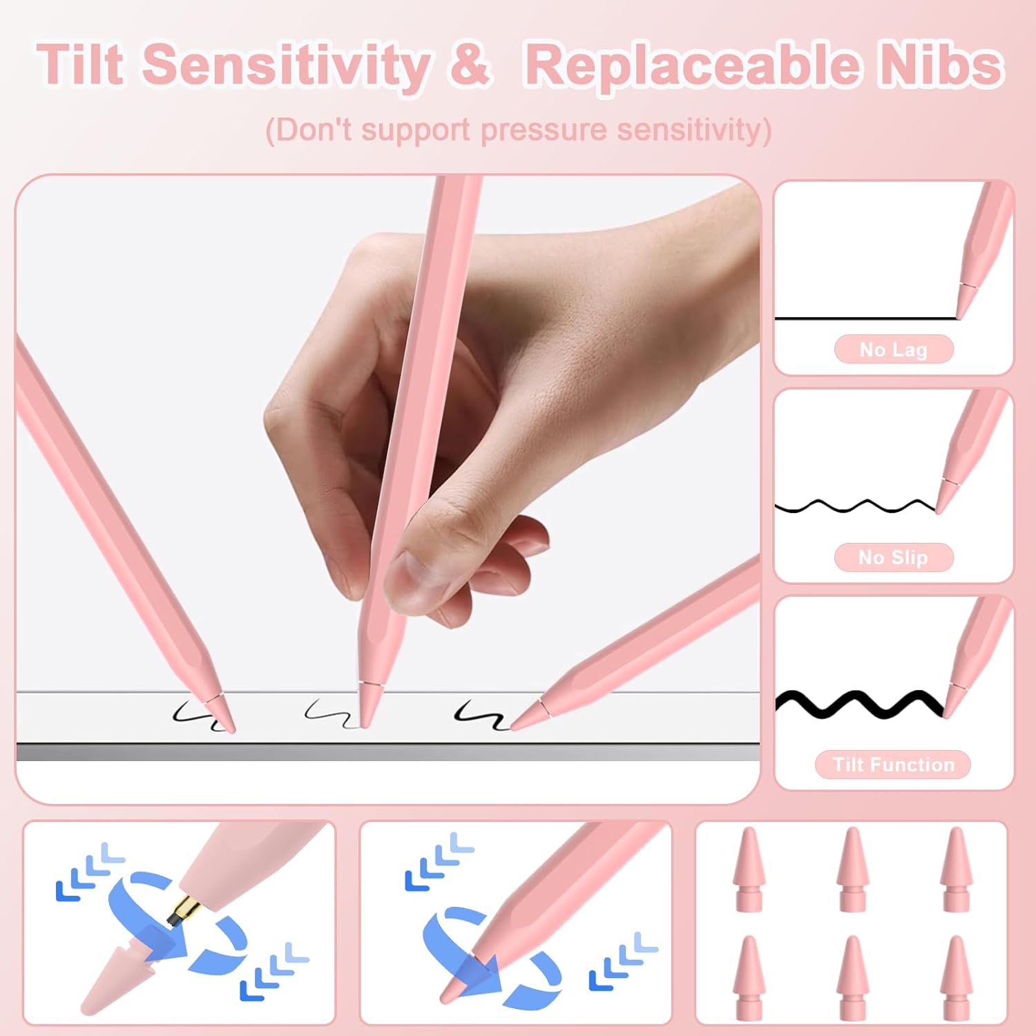 - Tilt Sensitivity: Peaboni stylus pen for iPad 10th generation is equipped with 1.5mm POM nib gives high sensitivity and accuracy, with no lag, no skipping, no scratches and no delays. Built-in tilt-sensing technology,allowing tilt the stylus at different angles to precisely control and change line thickness and shading,making writing and drawing more free. And we also provide 6 replacement nibs, you can change the POM nib if you feel the used nib not sensitive.(Please kindly know that our pencil don't support pressure sensitivity)