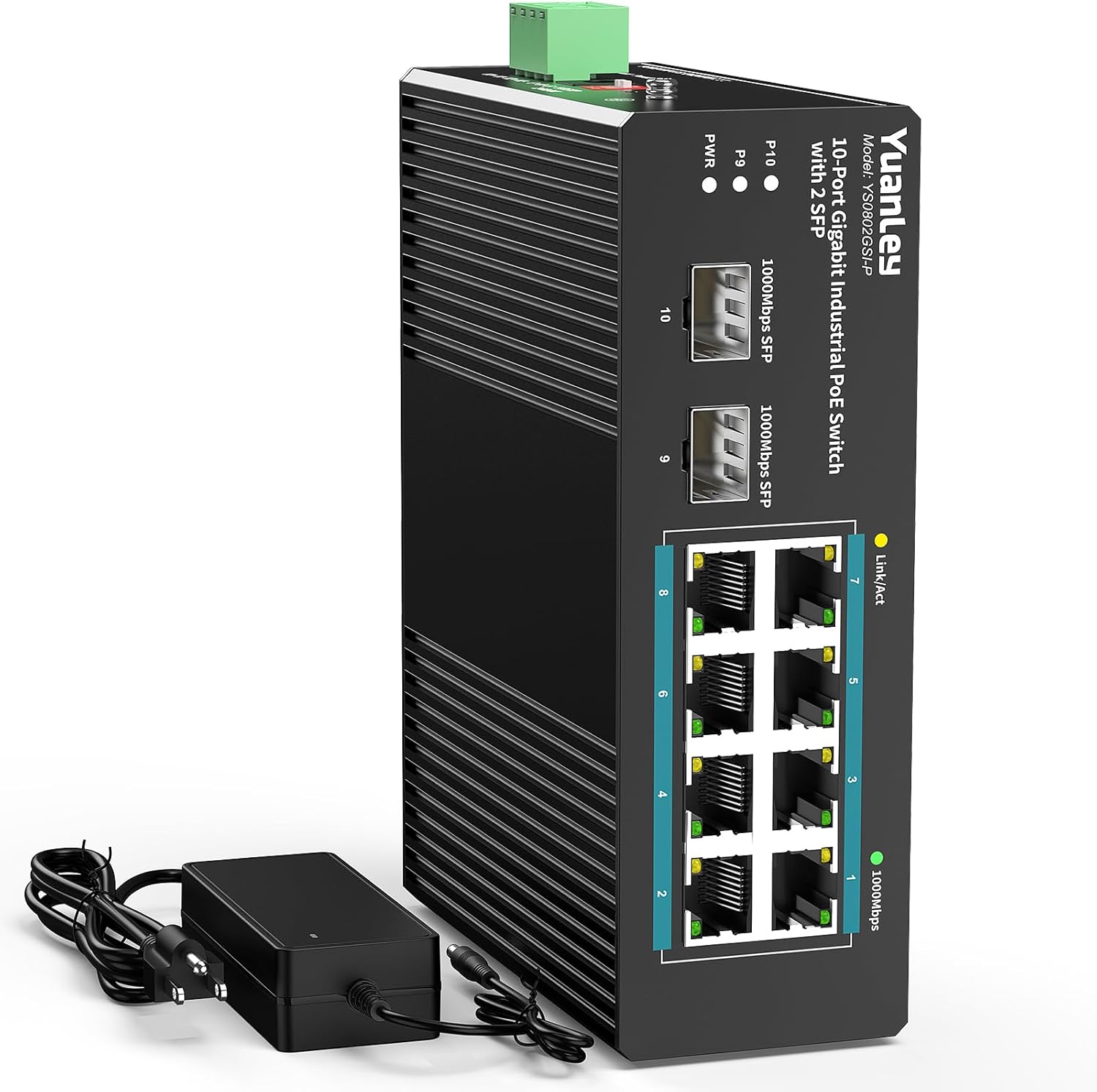 YuanLey 10 Port Industrial Switch with 8 Port PoE Gigabit & 2X SFP Port, Unmanaged PoE Switch with 120W Power Adapter, IEEE802.3af/at, VLAN & RSTP, Din-Rail PoE Switch for IP Camera, VoIP Phones,AP