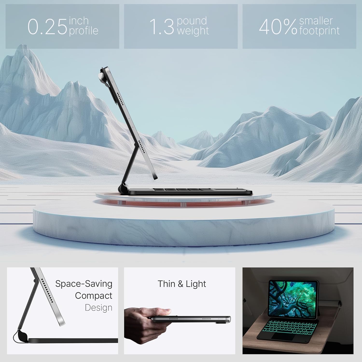 - 10-Color Backlight Keyboard with Shortcuts - Fluidly and accurately typing on the lighted keyboard for iPad 10th generation even in a dark room, ergonomic keys, 10 colors of backlight, and three adjustable backlight brightness levels give you a comfortable typing experience. No more searching around for basic functions, be more efficient with a full row of PadOS shortcuts to adjust brightness levels, change backlit colors, media, volume control, and more.