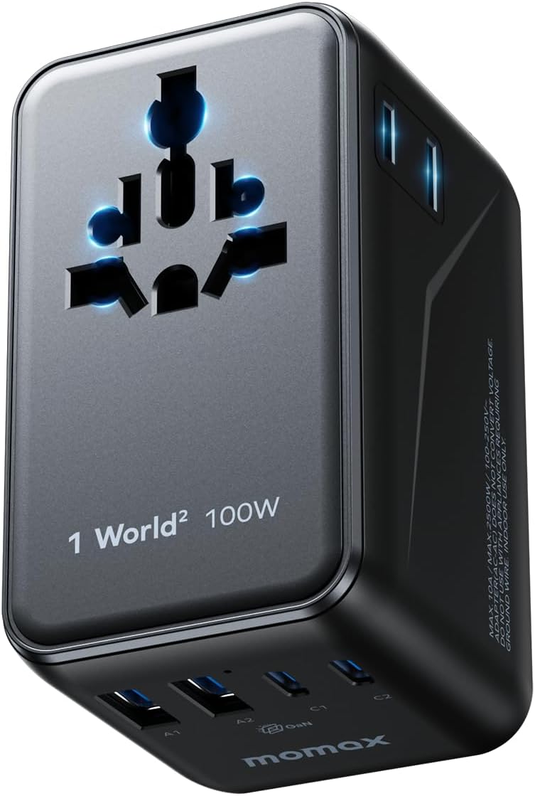 - New Model, Dual AC - The latest version of the MOMAX Travel Converter Plug is more compact and portable than the previous model under the same 100 W fast charging conditions. In addition, a new AC plug has been added, allowing two chargers to be used at the same time. With a total of 6 ports, 6 devices can be charged at the same time. The AC socket on the front has also been improved, eliminating problems with poor contact and difficult plugging and unplugging