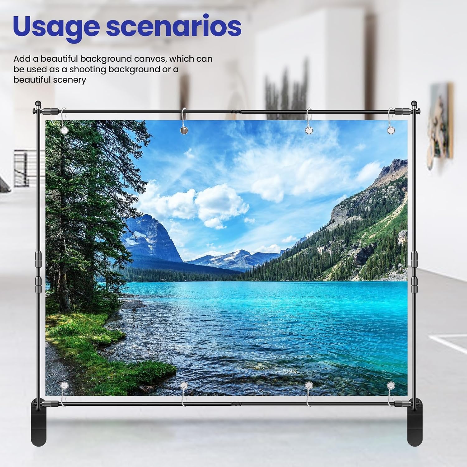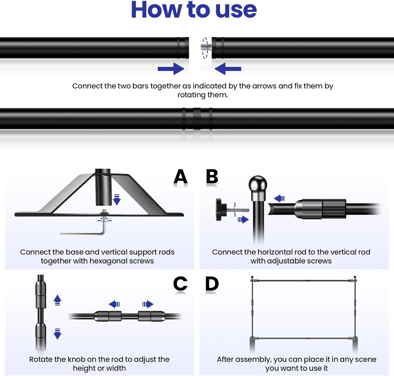 - 【Wide Application】The heavy duty backdrop stand is perfectly suitable for trade show, parties, conferences, promotion banner, weddings, birthday, baby shower, exhibitions, business events and so on. Photography backdrop stand can hang drapes, balloons to make your backdrop amazing, the carrying bag is convenient to store and transport it anywhere with you.