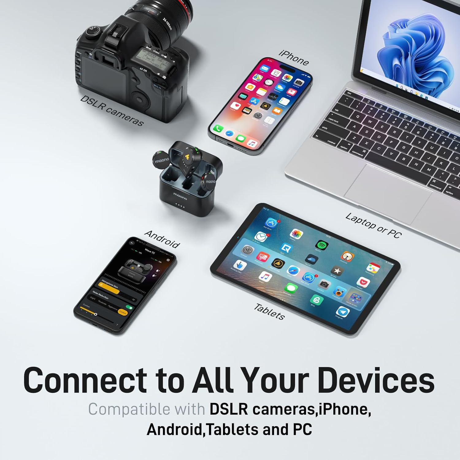 - Next-Gen Wireless Microphone for Creators: MAONO WAVE T5 with 9g weight and cutting-edge technology, small but mighty. It offers industry-leading broadcast sound quality and adjustable noise cancellation. Perfect for filmmakers, vloggers, and podcasters.
