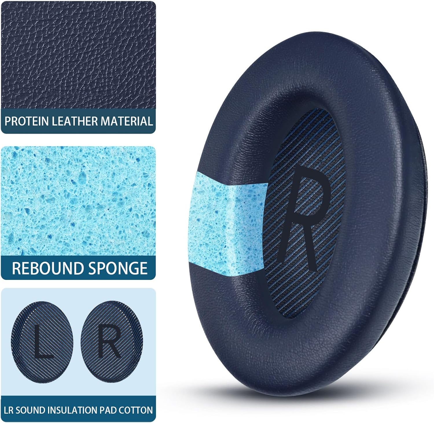 Headphones Replacement Ear Pads, Protein Leather earpad Cushions for Bose Quiet Comfort QC35 Headphones, Replacement Earpads, Softer Memory Foam - Navy Blue