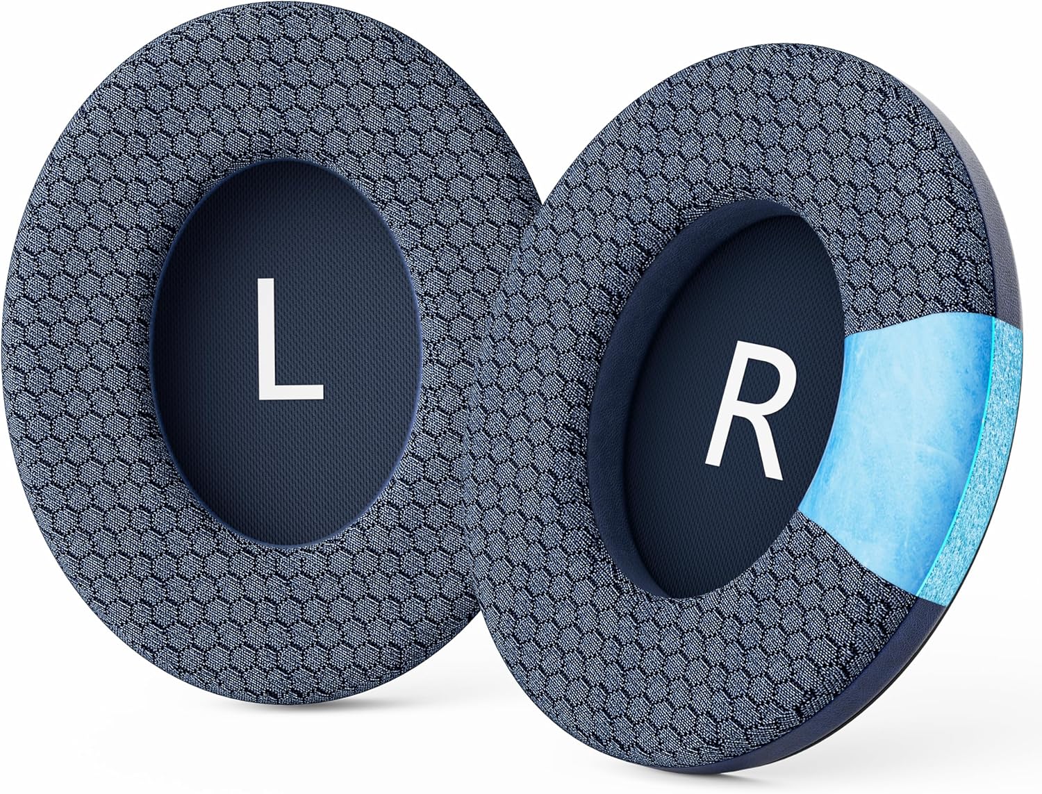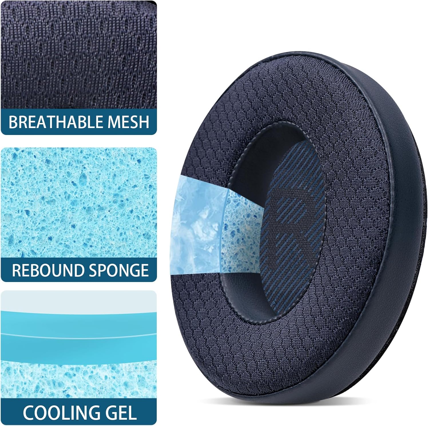 Cooling Gel Headphones Replacement Ear Pads for Bose Quiet Comfort QC35, Mesh Soccer Net Fabric Breathable Sports Fabric, Extra Thick & Cooler for Longer, Softer Memory Foam - Blue