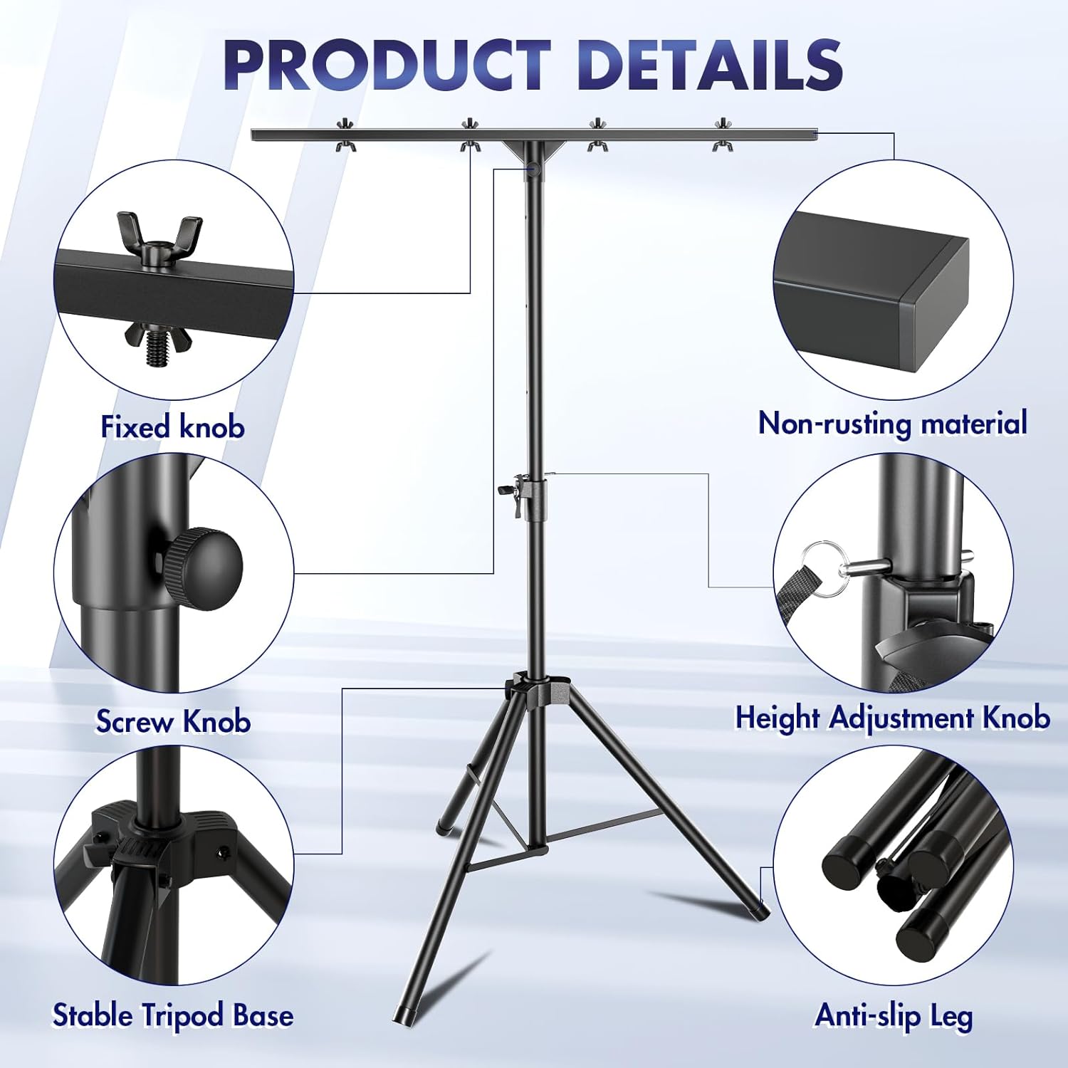 - 【Heavy Duty DJ Lighting Stand 】 Qoope light stand is made of thickened carbon steel and sturdy plastic ,can hang four Par Lights stably, support up to 100 lb dj lights,party lights