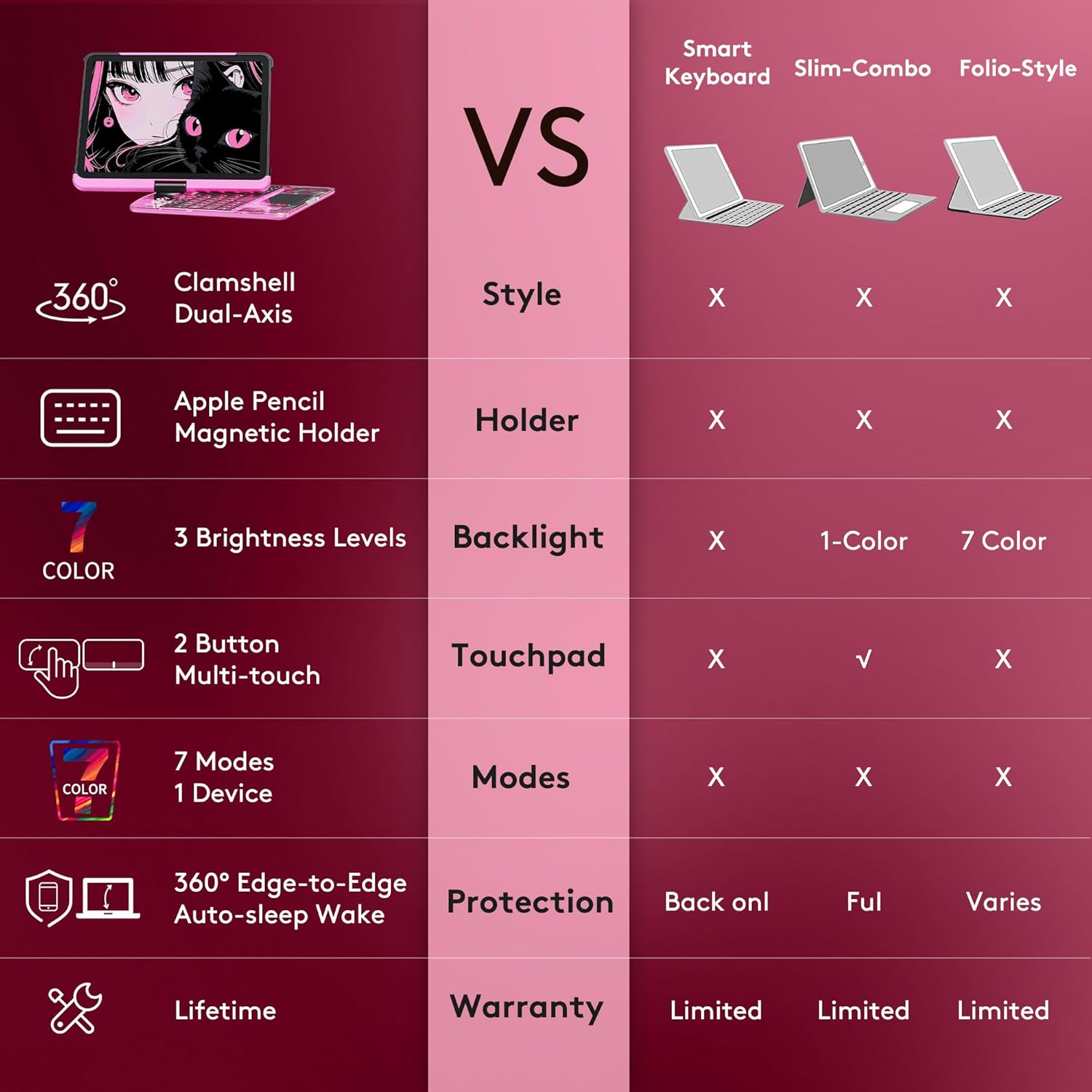 - Wireless Keyboard with Precision Trackpad: Boost your iPad's functionality with a built-in wireless keyboard and precision touchpad for easy navigation and editing. Perfect for professionals, students, and creatives who need laptop-like control on the go.
