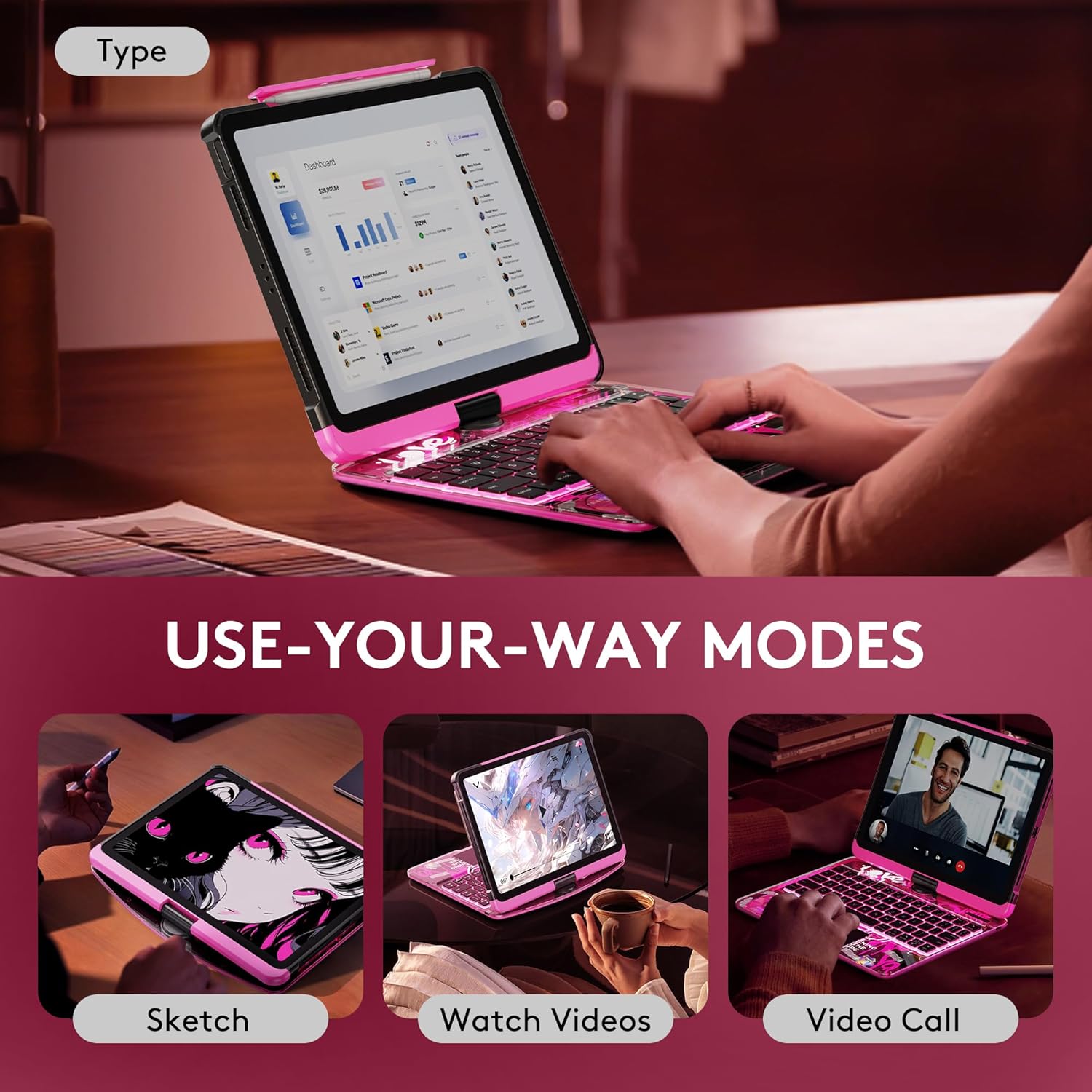 - 360° Rotating Stand & Multi-Angle Viewing: Enjoy full flexibility with the 360° swivel stand, offering 5 adjustable viewing angles. Whether you're typing, sketching, or watching a movie, seamlessly shift your iPad for maximum comfort and productivity in any mode.