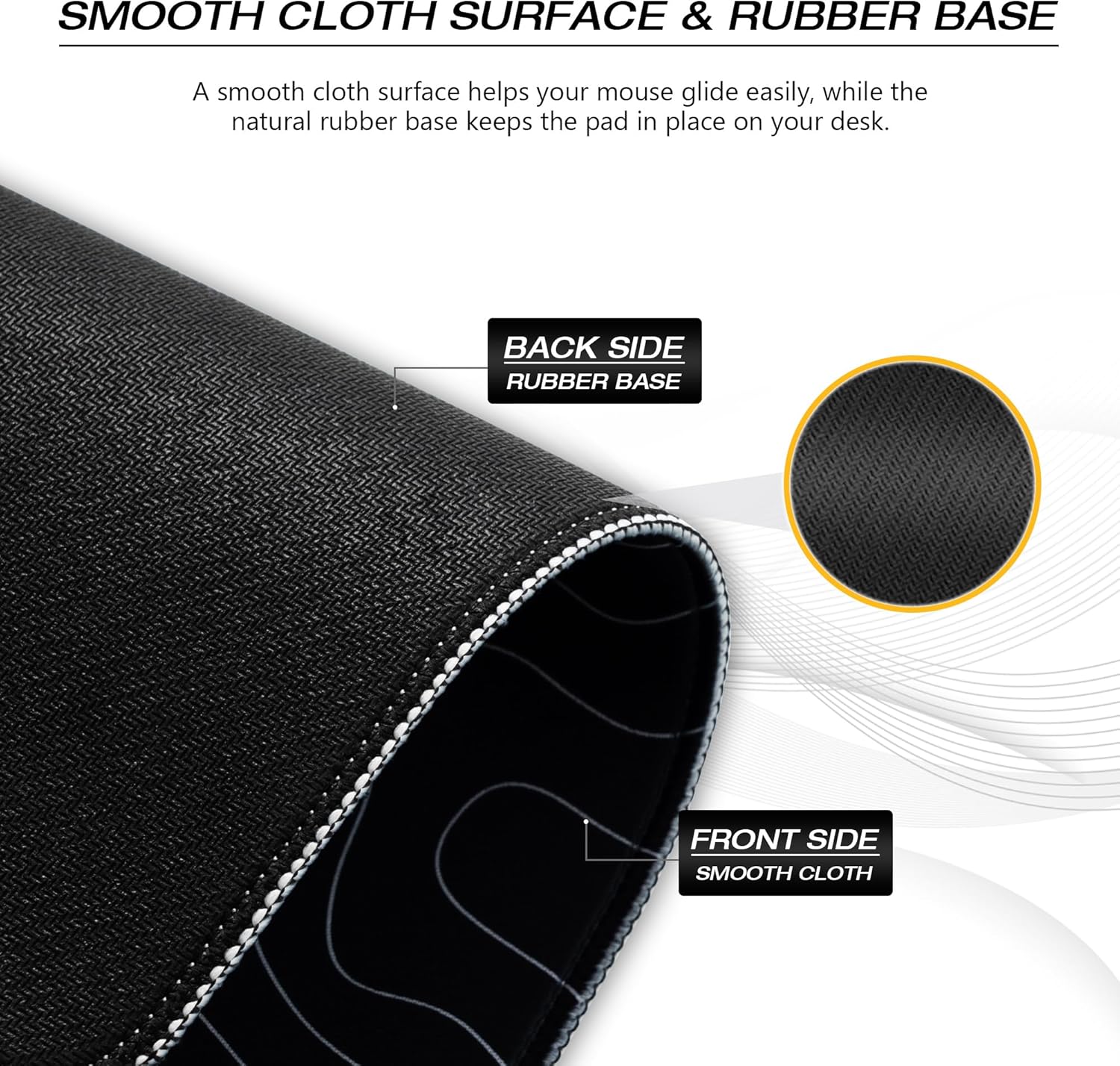 - 【Non-slip Rubber Base】The dense anti-skid nature rubber base offers extra heavy grid to ensure the mouse mat stay securely in place.Computer mouse pad helps prevent unwanted pad sliding effectively when making fast mouse movements or typing. Big mouse pad for desk is available for any flat, hard, tabletop surface.