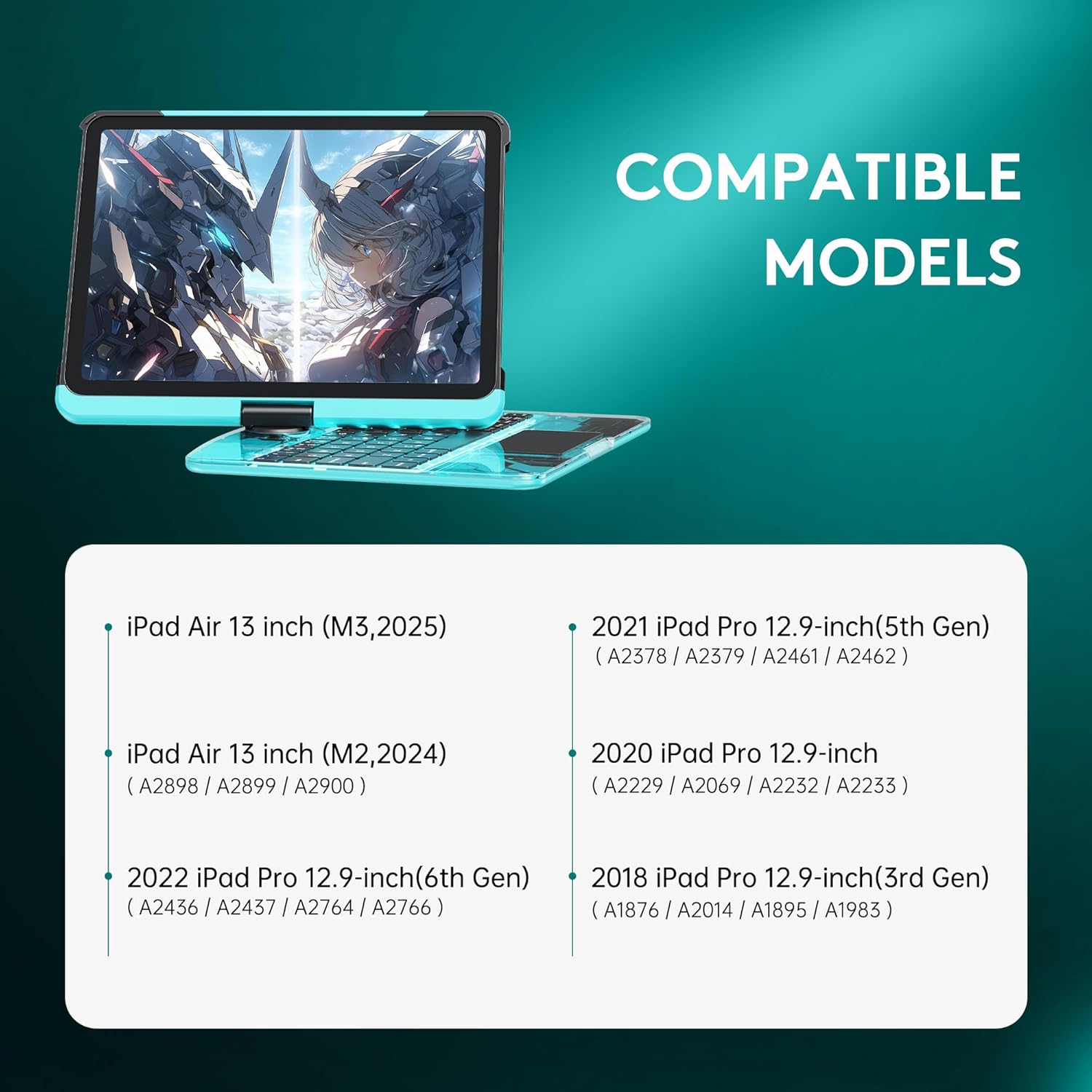 - Compatibility: Perfectly designed for the 2024 iPad Air 13-inch (M2), 2025 iPad Air 13-inch (M3), as well as the 2022 iPad Pro 12.9-inch (6th Gen), 2021 iPad Pro 12.9-inch (5th Gen), 2020 iPad Pro 12.9-inch (4th Gen), and 2018 iPad Pro 12.9-inch (3rd Gen).